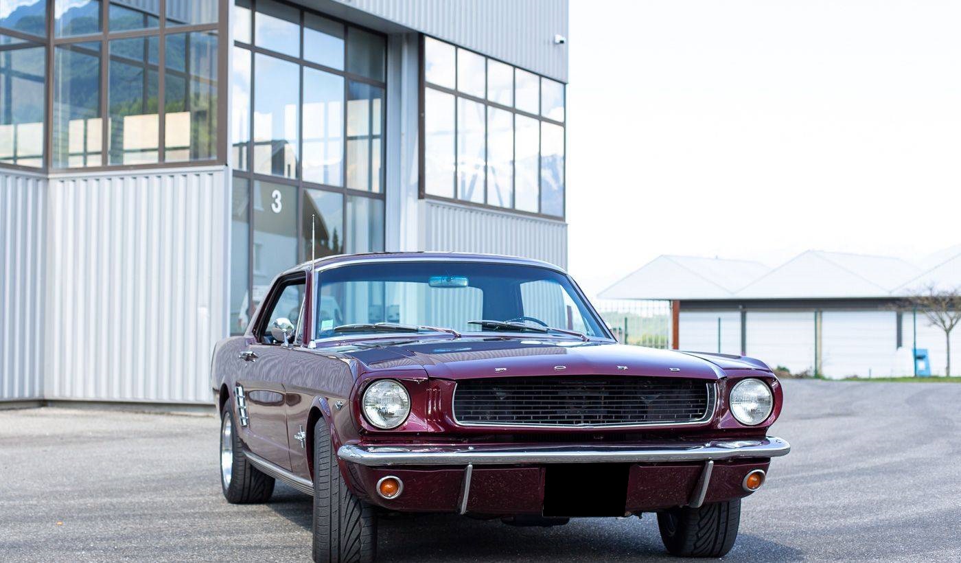 On the outside, the car is in very good condition. The paint in its Vintage Burgundy color has only very few visible defects in the gallery. The exterior plastics and gaskets are in good condition, as well as the headlights and chrome. The seller indicates that this Mustang is sound.