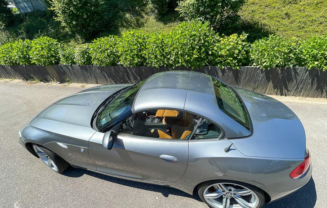 On the outside, the car is in very good condition. The paint in its grey color has only very few visible defects in the gallery. The exterior plastics and seals are in good condition, as are the headlights. The seller indicates that this Z4 is free of corrosion.