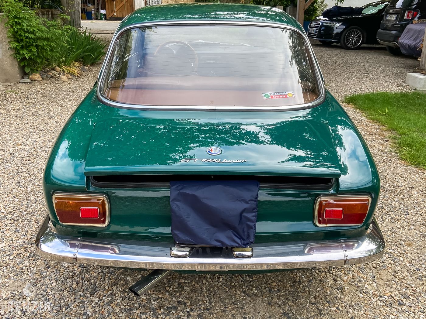On the outside, the car is in good condition. The paint in its green "Verde Muschio" color has only a few defects visible in the gallery. The seller indicates that some slight rust spots are visible on the bottom of the doors (see gallery). The seller also indicates the presence of a paint chip on the rear trunk (see gallery) and that the driver's door latch is worn. The plastics, chromes and exterior seals are in good condition, as well as the headlights. The seller indicates that the chassis of this Giulia is sound, pictures of the undercarriage are available in the gallery.