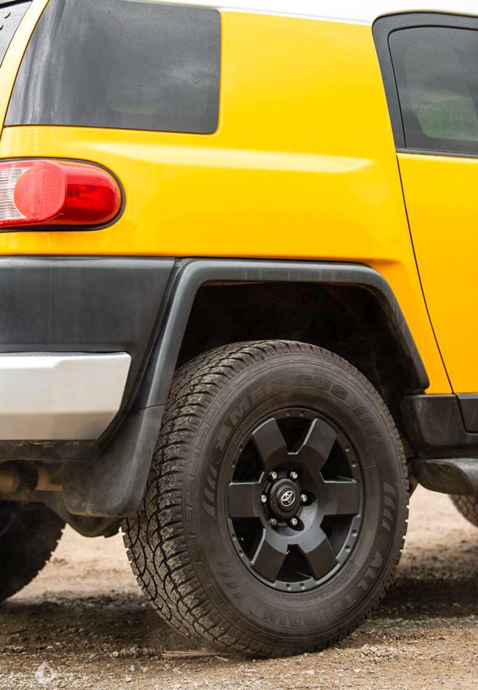 On the outside, the car is in good condition. The paint in its yellow color has only very few visible defects in the gallery. The exterior plastics and seals are in good condition, as are the headlights. The seller indicates that this FJ Cruiser is sound, pictures of the undercarriage are available in the gallery.