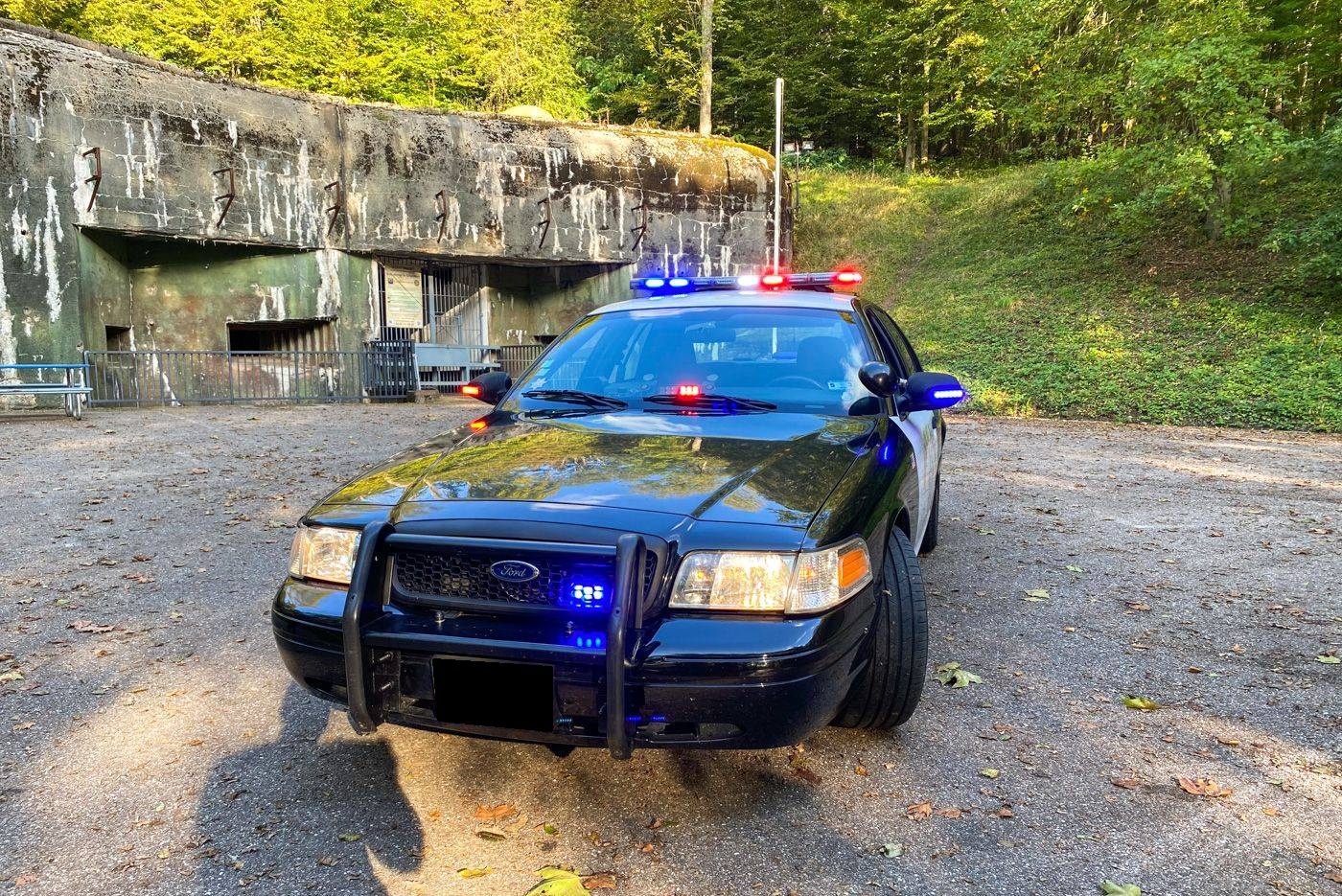 On the outside, the car is in good condition. The paint in its white and black Highway Patrol color has only very few visible defects in the gallery. The exterior plastics and seals are in good condition, as are the headlights. The seller indicates that this Crown Victory is sound, pictures of the underbody are available in the gallery. The car is equipped with a front bull bar, a flashing light, a siren, a traffic advisor, a working radar (in miles)