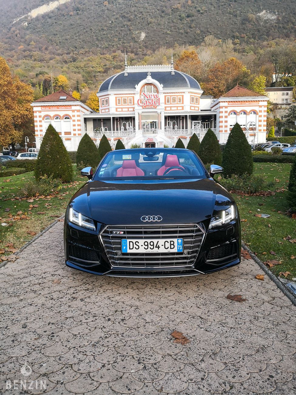 On the outside, the car is in very good condition. The paint in its black color has only very few visible defects in the gallery. The exterior plastics and seals are in good condition, as well as the headlights. The seller indicates that the chassis of this Audi TTS is sound, pictures of the undercarriage are available in the gallery. He also specifies that the soft top is functional and waterproof.
