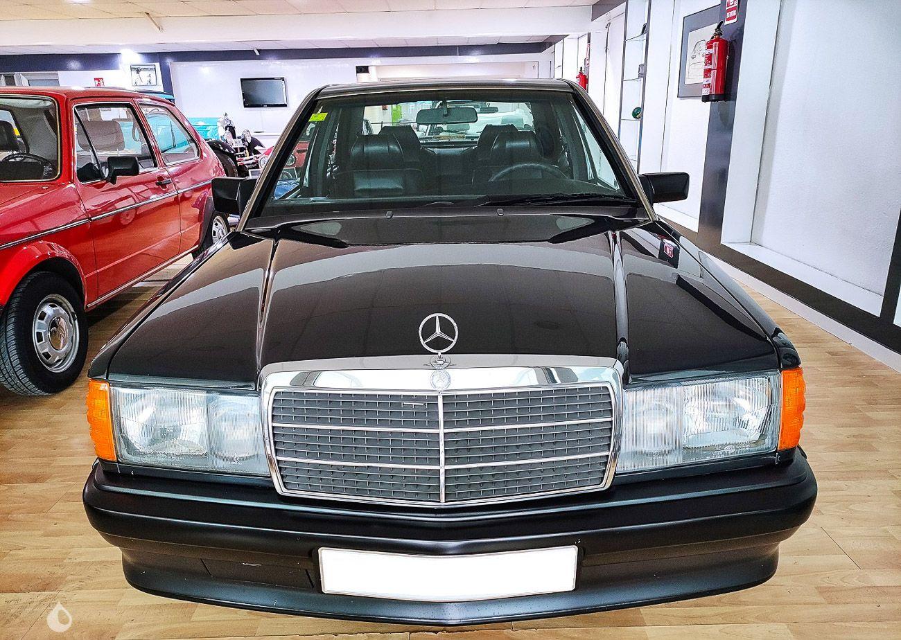On the outside, the car is in very good condition. The paint in its black color has only very few visible defects in the gallery. The seller indicates that this Mercedes has been completely painted. The exterior plastics and seals are in good condition, as well as the headlights. A slight scratch on the rear bumper can be noticed (pictures are visible in the gallery). The seller indicates that the chassis of this 190 2.5 16s is sound, pictures of the underbody are available in the gallery.