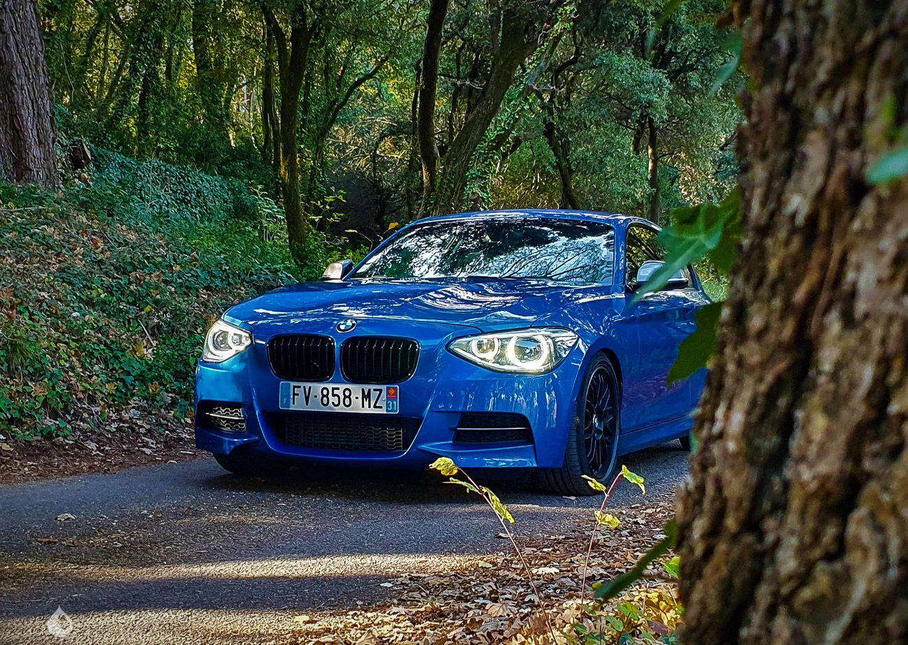 On the outside, the car is in very good condition. The paint in its "Estoril Blue Metallic" color has only a few visible defects in the gallery. The exterior plastics and seals are in good condition, as well as the headlights. It has a Shadow Line. The seller indicates that the chassis of this M135 is sound, pictures of the undercarriage are available in the gallery.