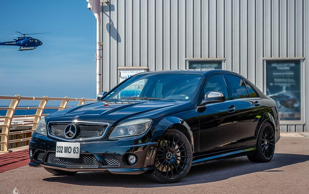 On the outside, the car is in very good condition. The paint in its black color has only a few visible defects in the gallery. The exterior plastics and seals are in good condition, as are the headlights. The seller indicates that the chassis of this C63 is sound, pictures of the undercarriage are available in the gallery.
