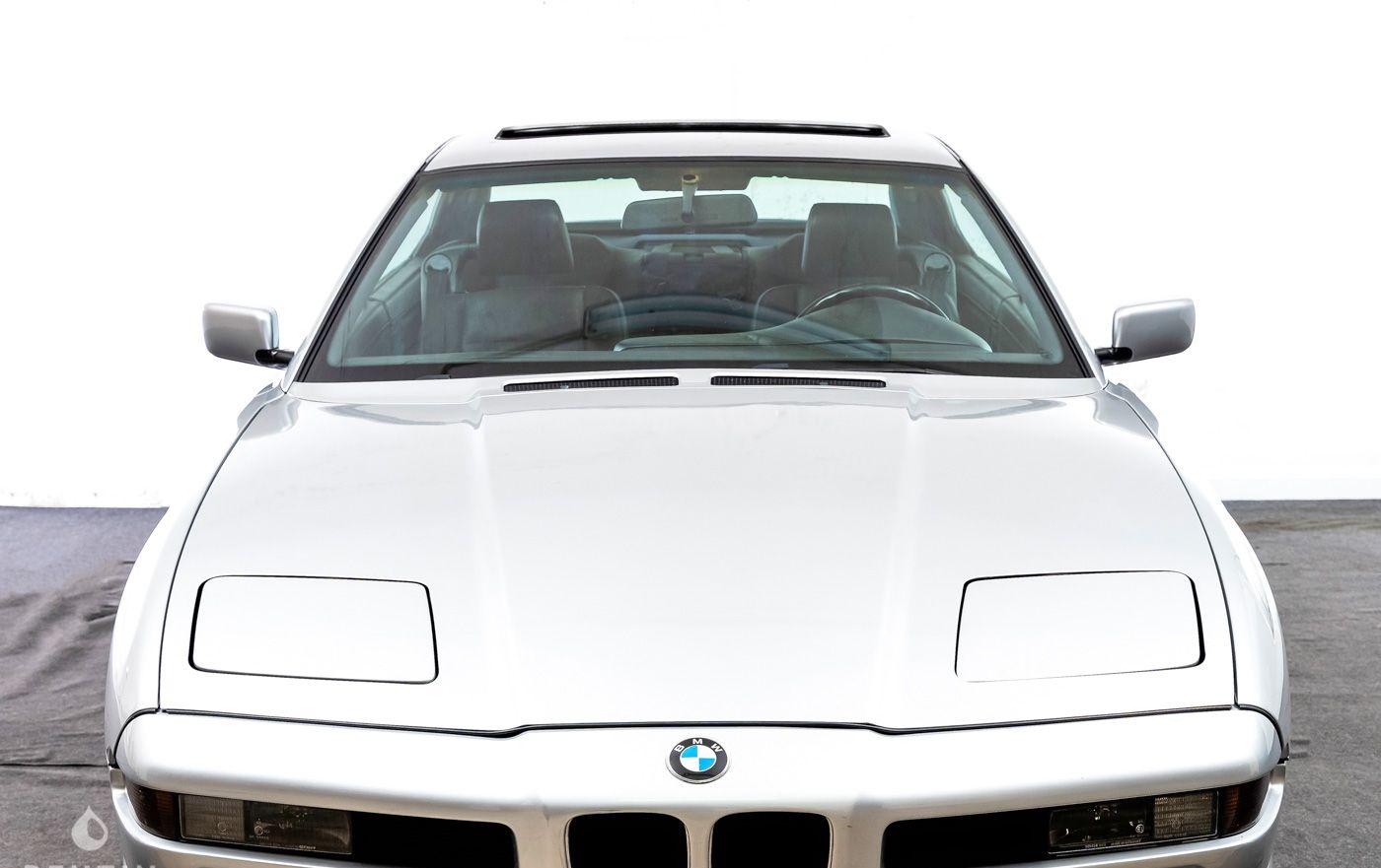On the outside, the car is in very good condition. The original paint in its grey color (sterlingsilber metallic) has only very few visible defects in the gallery. The exterior plastics and seals are in good condition, as well as the headlights. The seller indicates that the chassis of this BMW 850i is sound, pictures of the undercarriage are visible in the gallery.