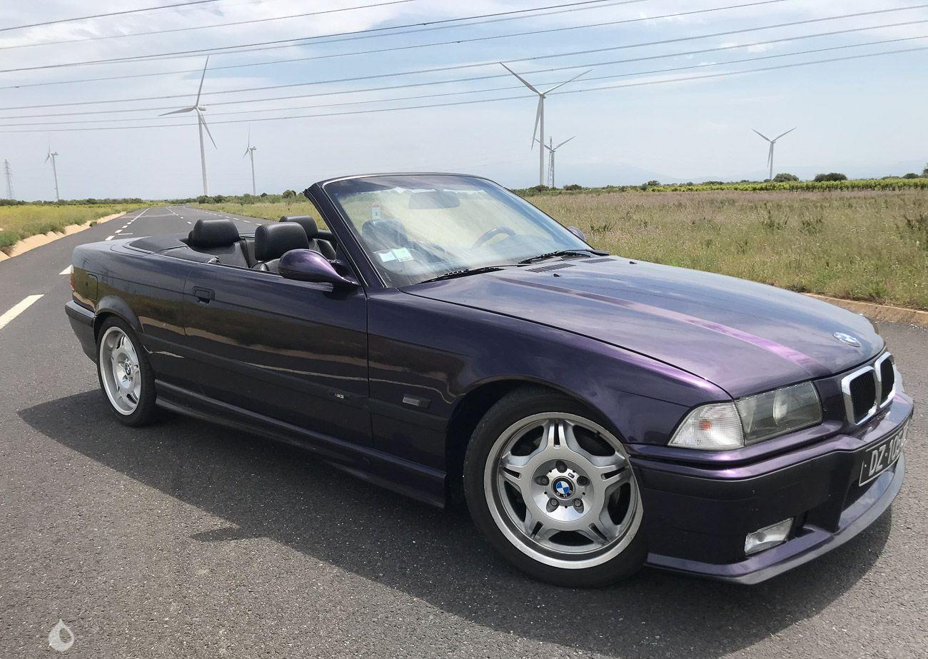 On the outside, the car is in very good condition. The paint in its techno-violet-metallic violet color has only very few visible defects in the gallery. The exterior plastics and seals are in good condition, as are the headlights. The seller indicates that the chassis of this M3 is sound, pictures of the undercarriage are available in the gallery. The seller indicates that the soft top, the rear window and the motors of the mechanism are new.