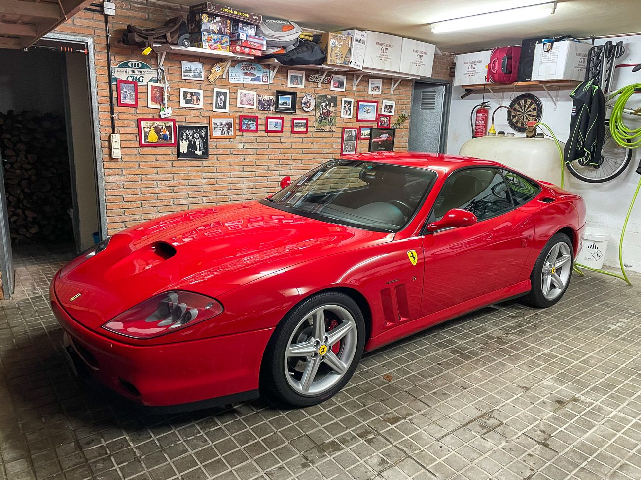 On the outside, the car is in very good condition. The paint in its Rosso Corsa red color has only very few defects visible in the gallery. The exterior plastics and gaskets are in good condition, as well as the headlights. The seller indicates that the chassis of this 575M is sound, pictures of the undercarriage are available in the gallery.