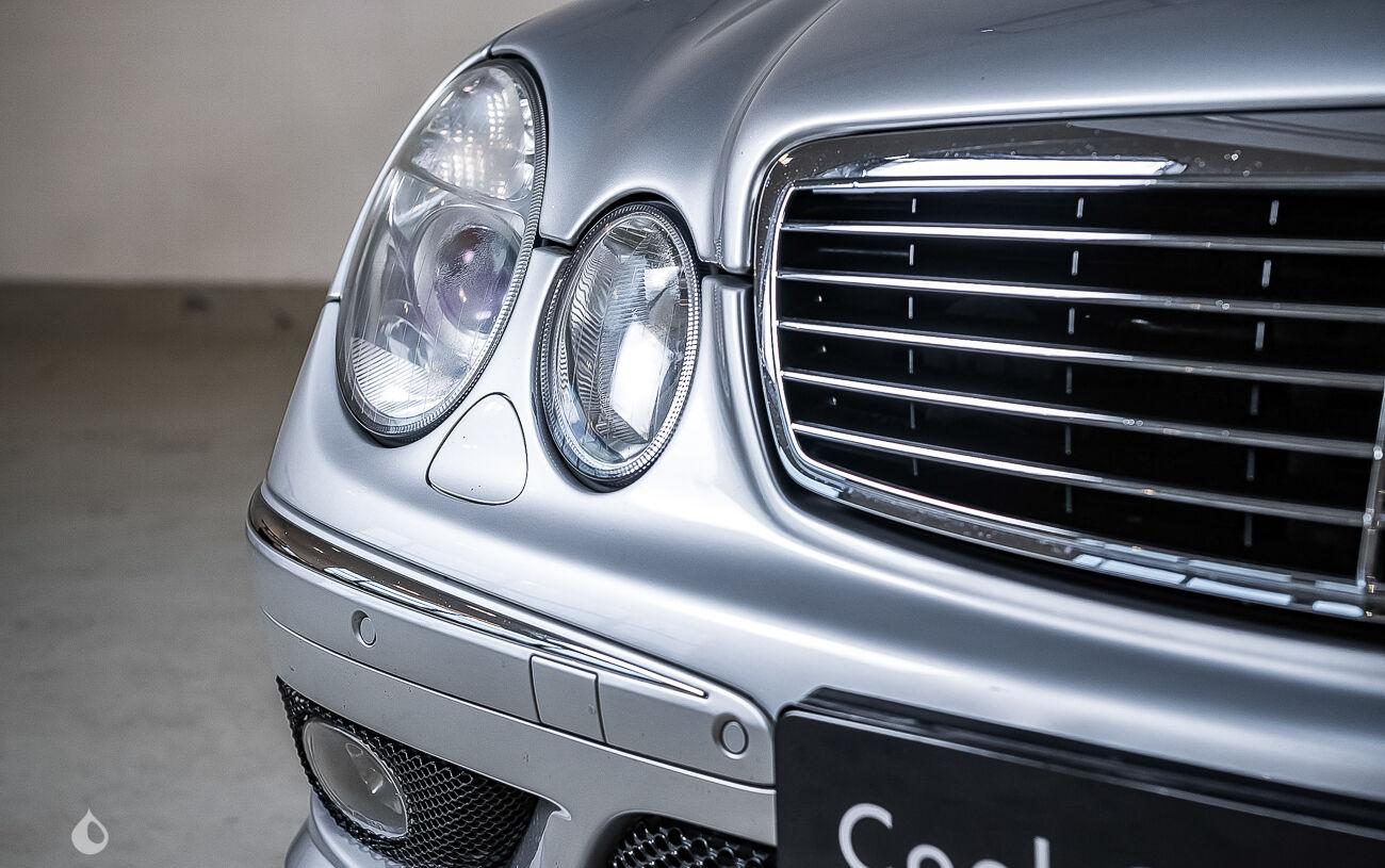 The interior is in good condition. The black leather upholstery has no tears or holes but shows slight wear. The steering wheel and the dashboard are in very good condition. The on-board instrumentation and electrical equipment are working normally. This E55 has, among others, the following equipment: