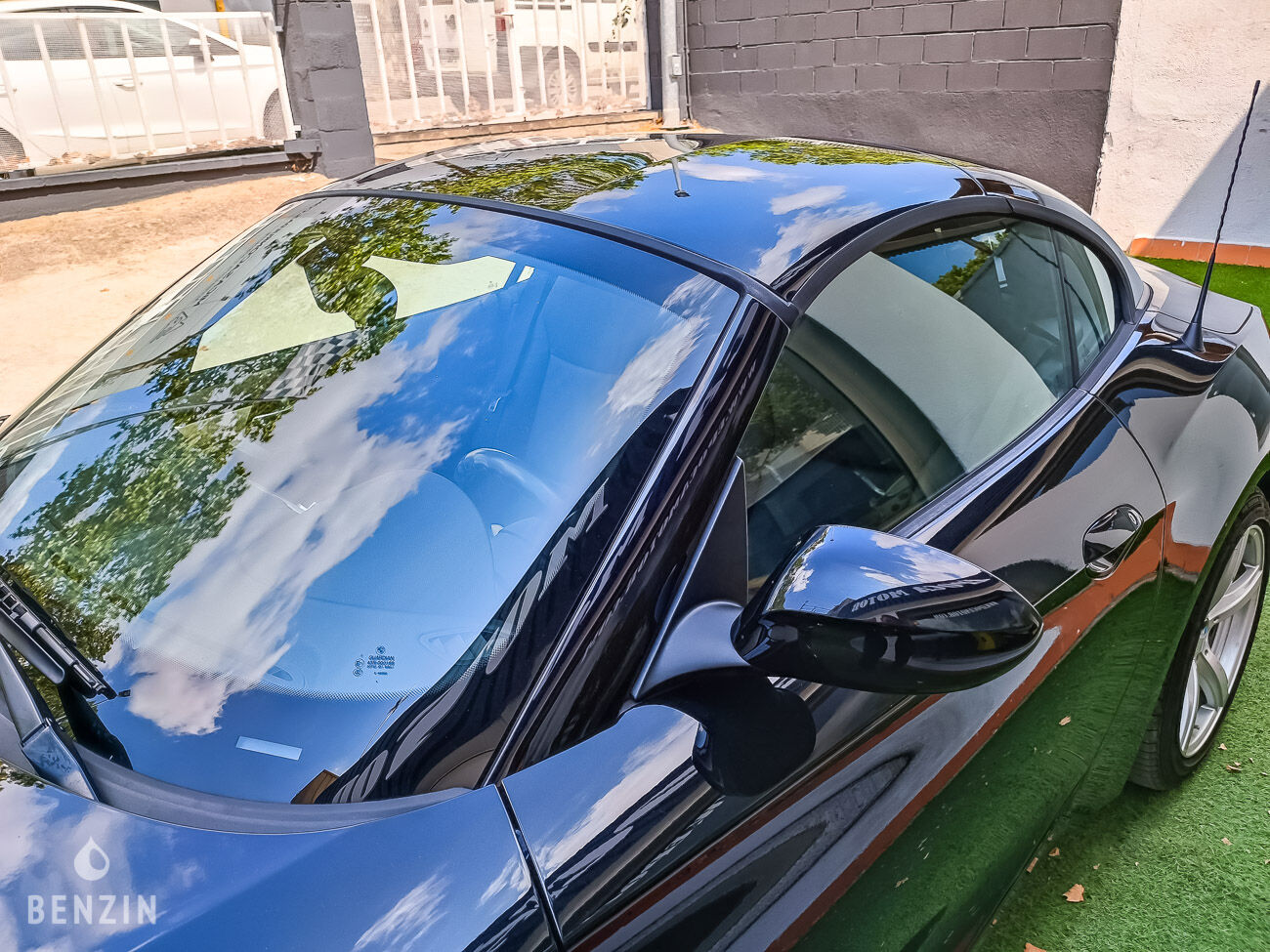 On the outside, the car is in good condition. The paint in its black "Black Sapphire Metallic" color (code 475) has only a few visible defects in the gallery. The exterior plastics and seals are in good condition, as are the headlights. Pictures of the underbody are available in the gallery. The seller indicates that the soft top works normally.