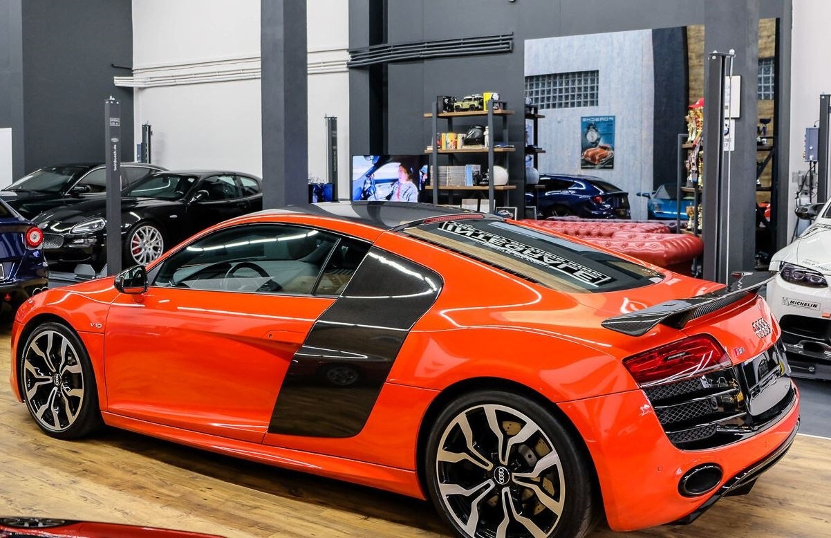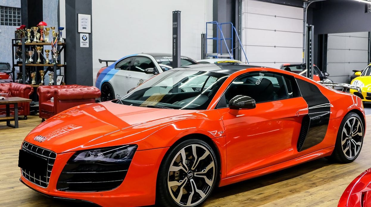 On the outside, the car is in good condition. The bodywork in its orange color has only a few defects visible in the gallery. The seller specifies that the body has been covered. Initially, the car is black. The exterior plastics and seals are in good condition, as are the headlights. Pictures of the underbody are available in the gallery.