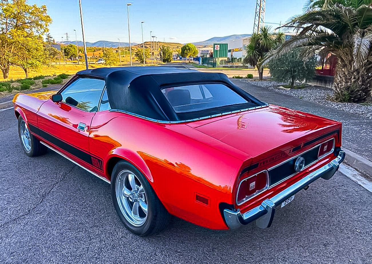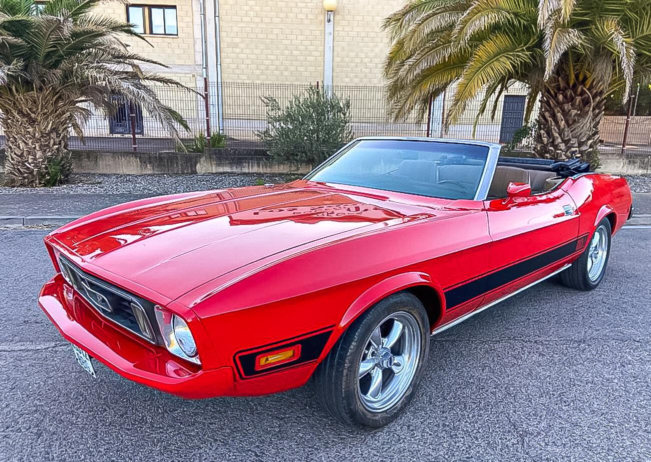 On the outside, the bodywork has recently been repainted in its red color, it does not show any notable defects. The exterior plastics and seals are in good condition, as are the headlights. Pictures of the underbody are available in the gallery. The seller indicates that the electric soft top is in good condition and functional.