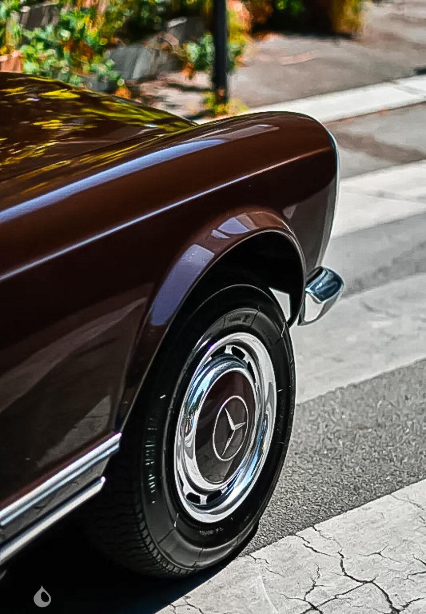 The "California" version features two real extra seats in the back and therefore no soft top, although a Hard-Top is available. This Pagoda was delivered new to Versaille, the order form is visible in the gallery.