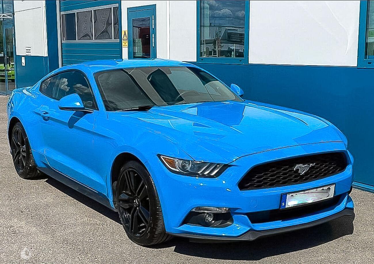 The interior is in good condition. The black leather upholstery has no tears or holes but shows slight wear. The steering wheel and the dashboard are in good condition. The on-board instrumentation and electrical equipment are working normally. This Mustang has the following equipment:-Android Auto-ACC-Bixenon lights-Backup camera-Bluetooth