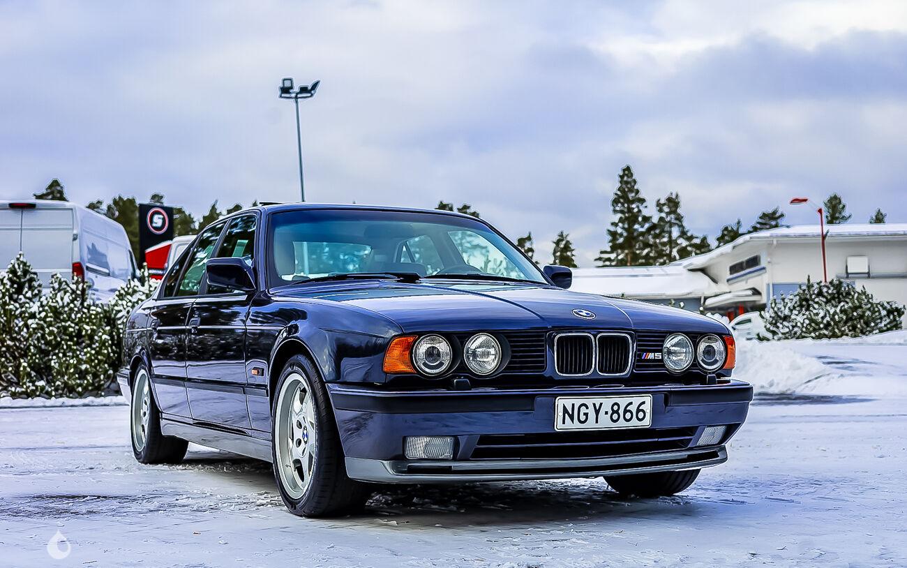 On the outside, the car is in very good condition. The paint in its "Macau Blau Metallic" blue color has only a few flaws visible in the gallery. The car has been repainted in its original color about ten years ago. The seller indicates that the body of this M5 shows no corrosion. The exterior plastics and seals are in good condition, as are the headlights. Pictures of the underbody are available in the gallery.
