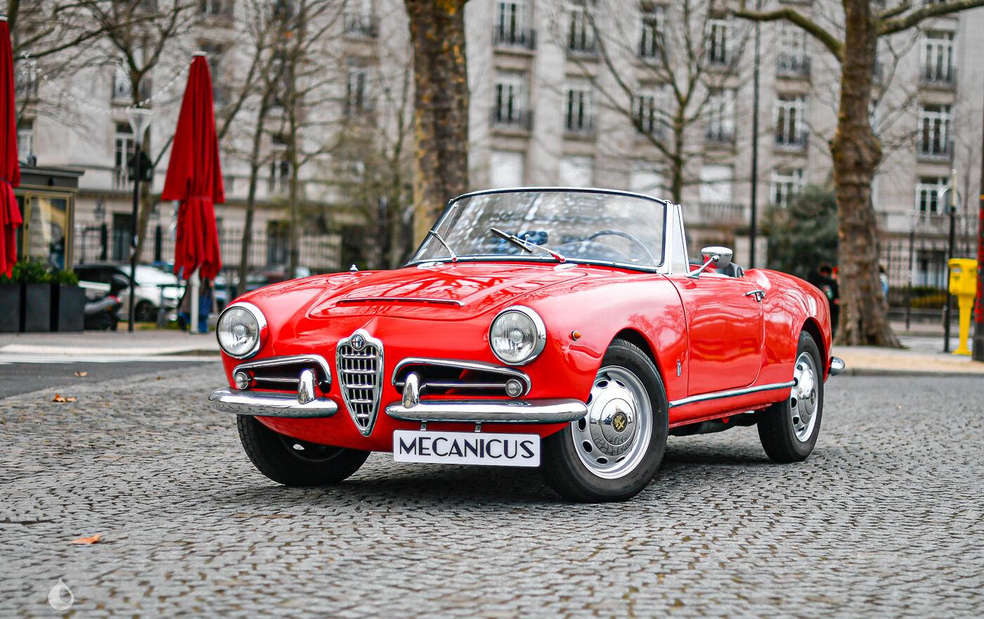 On the outside, the car is in very good condition. The paint in its Rosso Alfa red color has only a few visible defects in the gallery. The chrome and exterior seals are in good condition, as are the headlights. The seller indicates that the alpaca hood is in very good condition.
