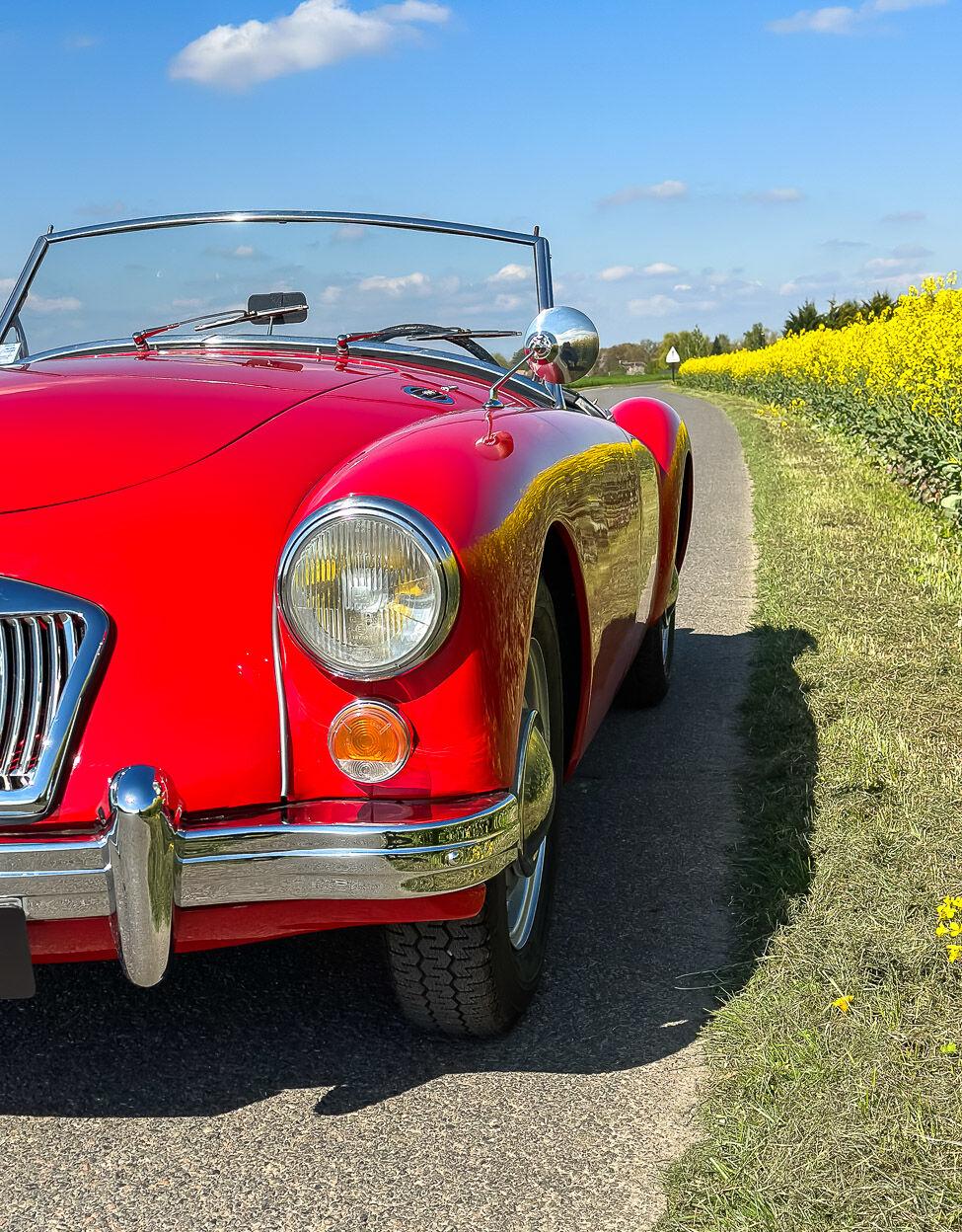 On the outside, the car is in very good condition. The bodywork has been repainted in its red color, it has only a few defects visible in the gallery. The seller specifies that the chromes have been redone and that the windshield and hood seals are new. Pictures of the undercarriage are available in the gallery.