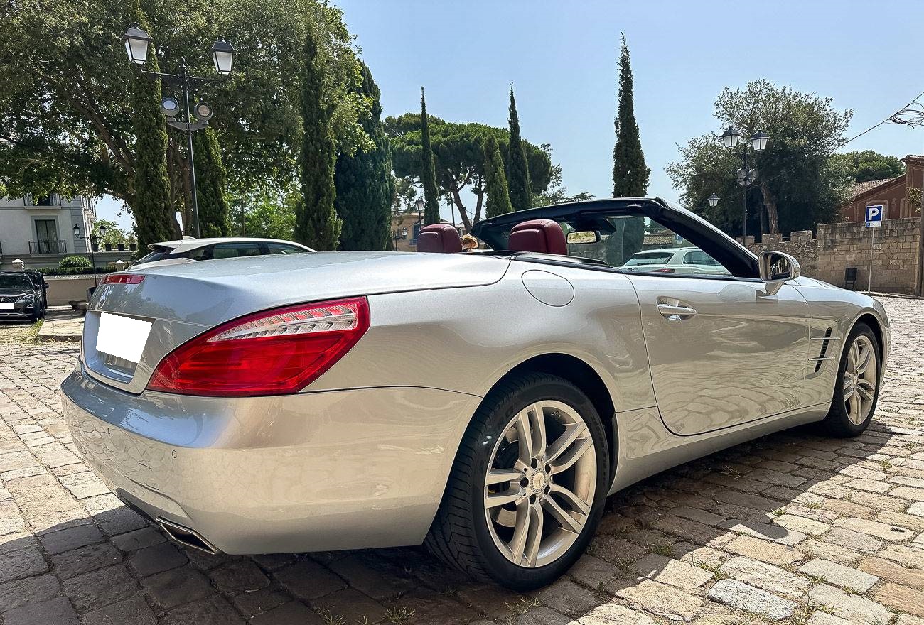 The interior is in good condition. The red leather upholstery (Leather Red, code 207) has no tears or holes, but shows slight signs of wear. The steering wheel and dashboard are in good condition. On-board instrumentation and electrical equipment are in normal working order. This car features the following equipment: - 200A Cuir - 207A Cuir - Rouge - 208B Instruction and maintenance book in Spanish - 235 Active Parking Assist - 249 Electrochromic interior and exterior rearview mirror - 255B Mb-Mobilo with DSB and GGD - 338B Language Spanish - 347 Mercedes-Benz emergency call, TELE AID call system (D2B) - 415 Panoramic roof - 427 7-speed automatic transmission - 475 Under-inflation sensor (TPM) - 500 Electrically folding mirrors - 502 Navigation system update - 513 Traffic sign detector - 527 APS CONTROL with DVD drive (navigation), High-Line radio - 577L Spain - 581 Automatic air conditioning - 5XXL Europe - 739 Baguette Aluminum - 775U Iridium silver - Metallic finish - 873 Heated seats, passenger and driver. - 882 Burglar alarm and detector - 915 Increased tank capacity - 927 Euro 6 - B03 Start&Stop system - B54 Module COM, Live Traffic Information - FR Roadster - K11 Adaptive brake lights - R70 Jantes aluminum 5-double-spoke design 18" "mixed tires" - U18 Child seat recognition - U60 Pedestrian airbag - U72 DVD player avec region code 2 Europe, Japan