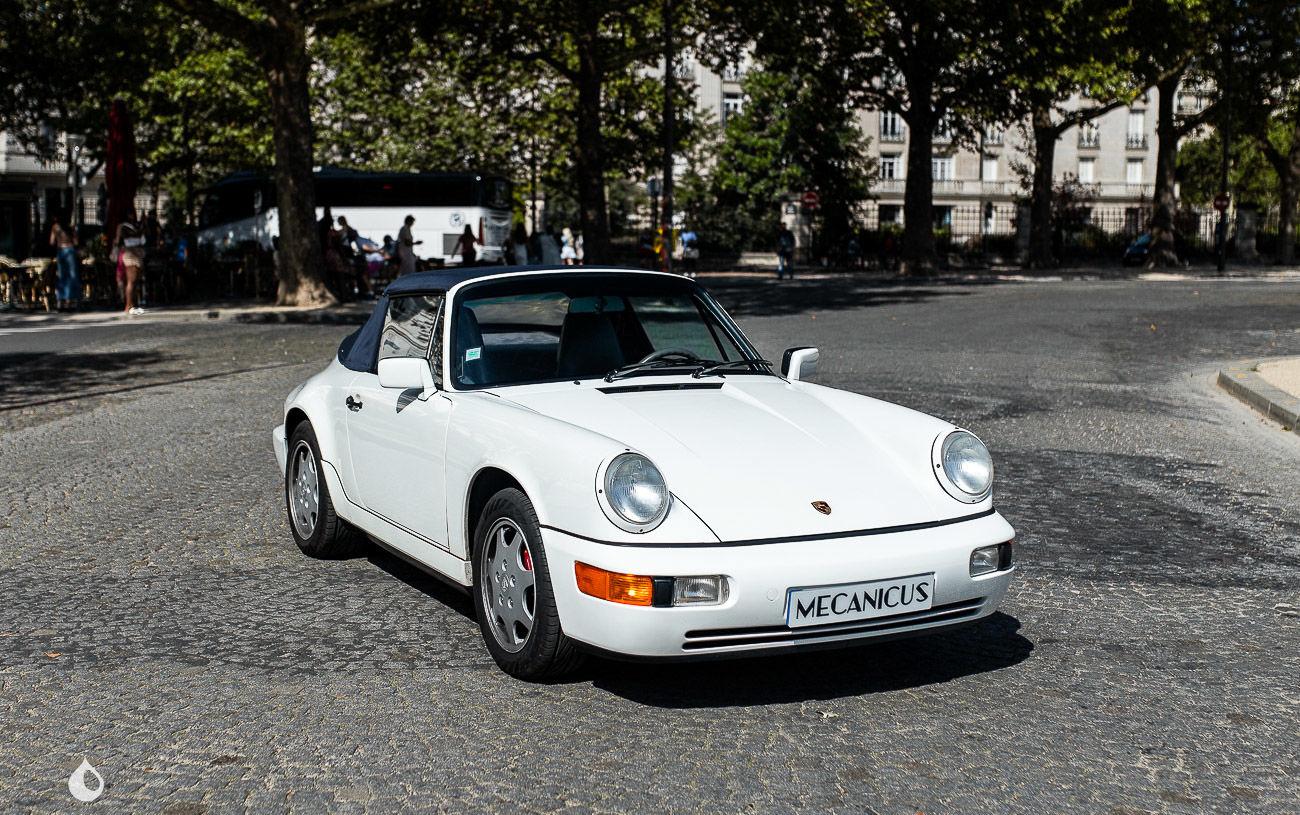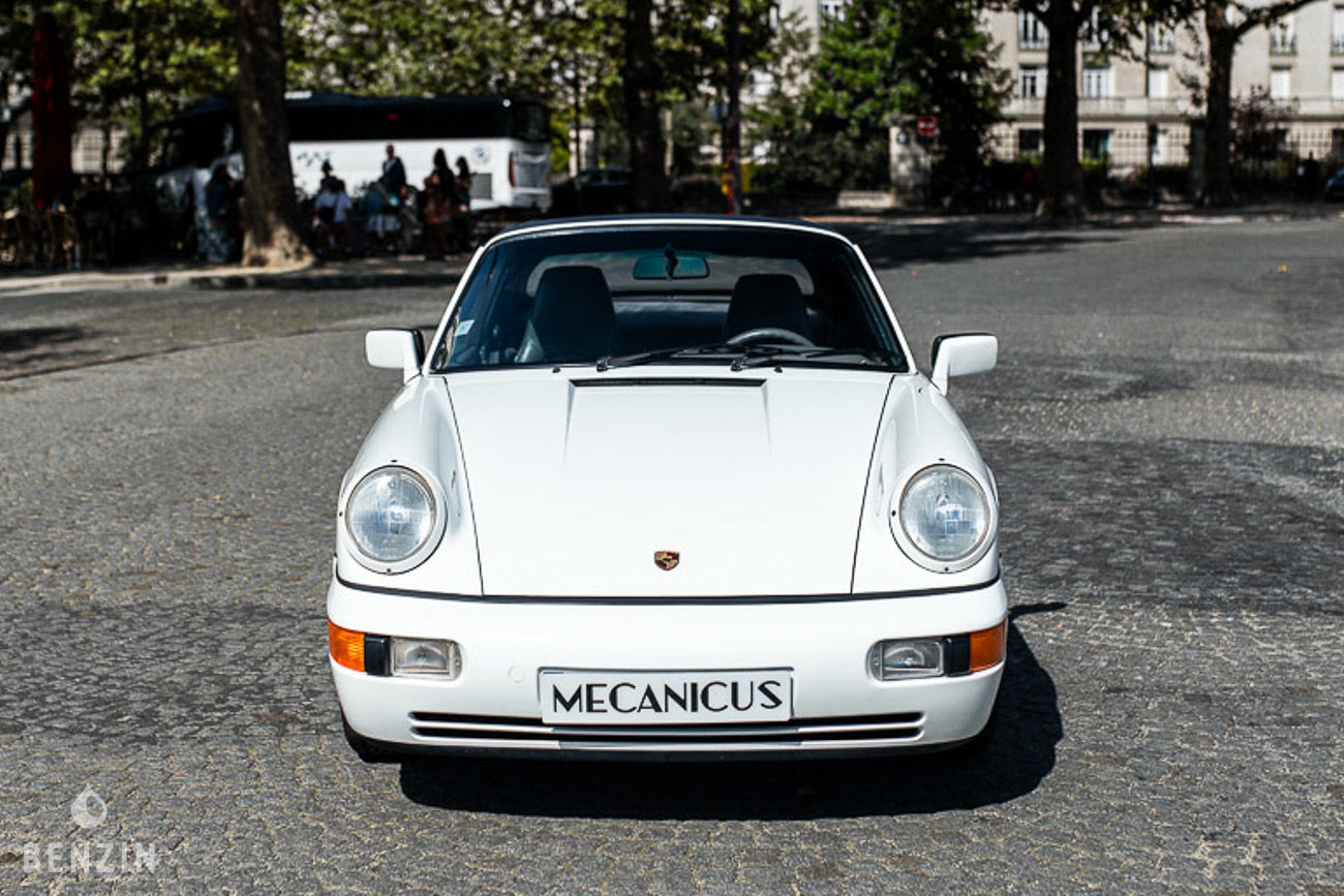 Externally, the car is in good condition. The paintwork in Grand Prix white (908) shows only a few visible defects in the gallery. The soft top is in good condition and functional.