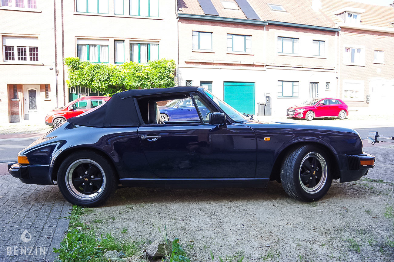 Externally, the car is in good condition. The Dunkelblau 347 blue paintwork has only a few defects, which can be seen in the gallery. Photos of the underbody are available in the gallery. The soft top is in good condition and functional, having recently been replaced.