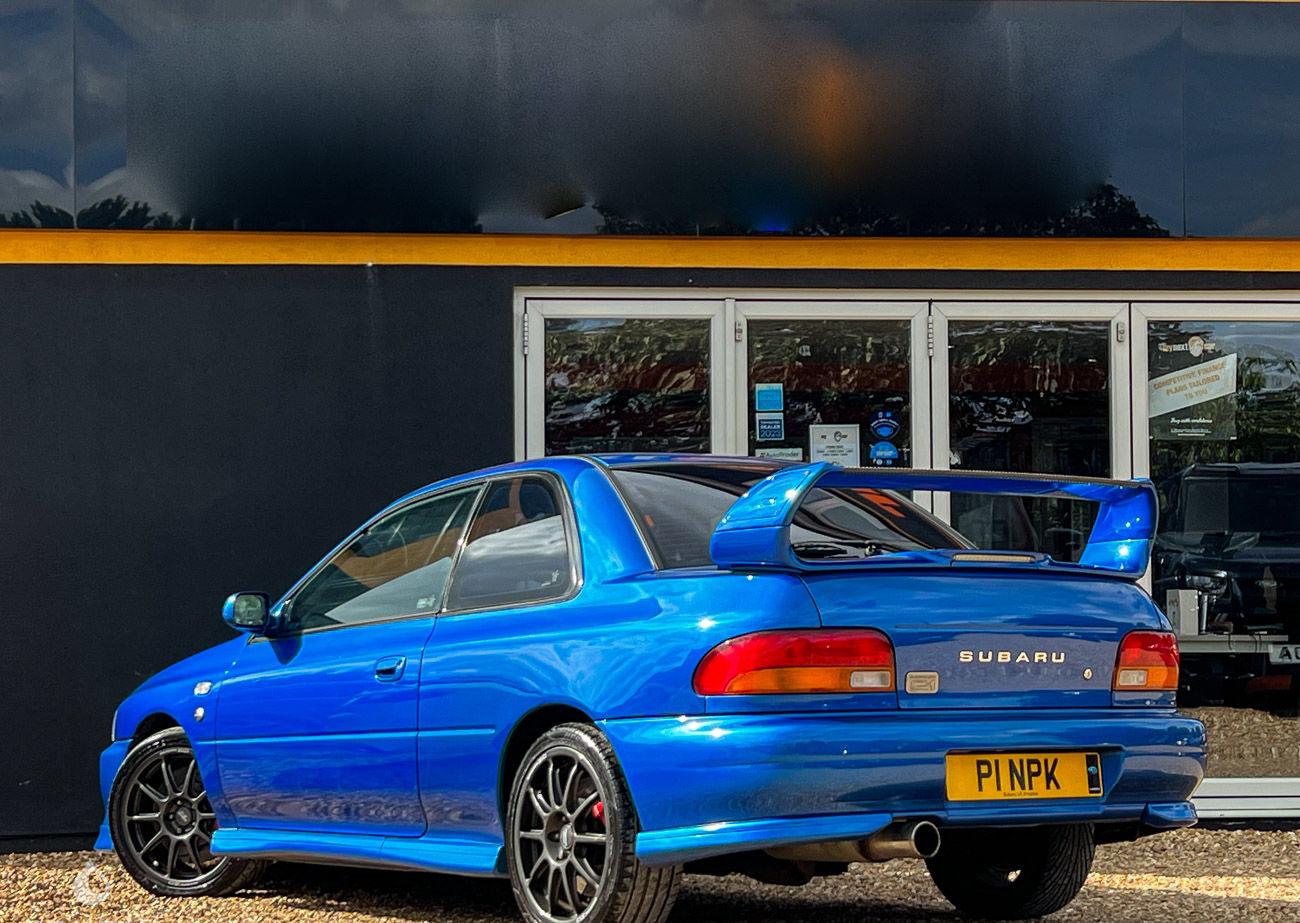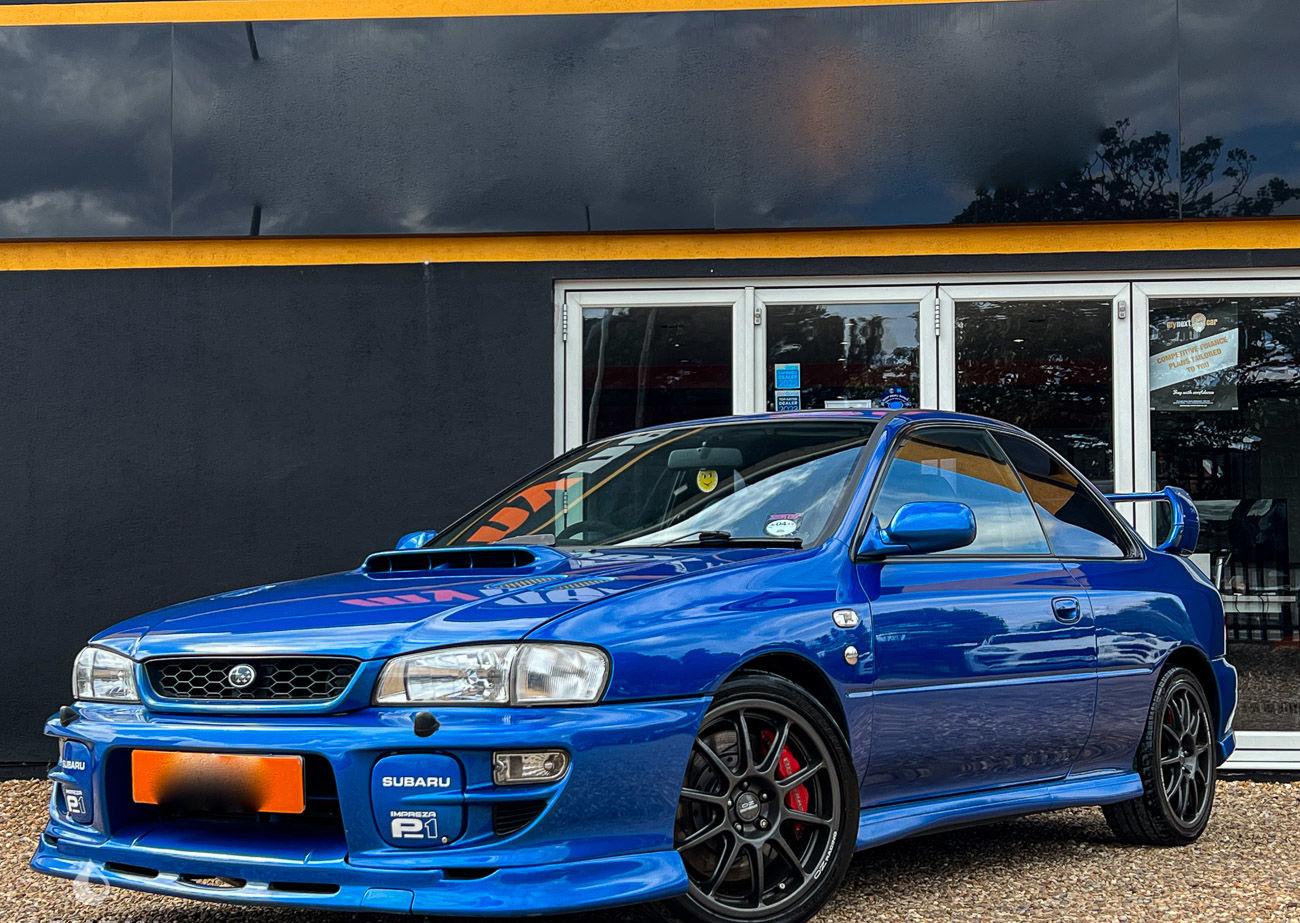 The interior is in good condition. The specific Prodrive grey and blue upholstery has no tears or holes, but shows slight signs of wear. The steering wheel and dashboard are in good condition. On-board instrumentation and electrical equipment are in normal working order.
