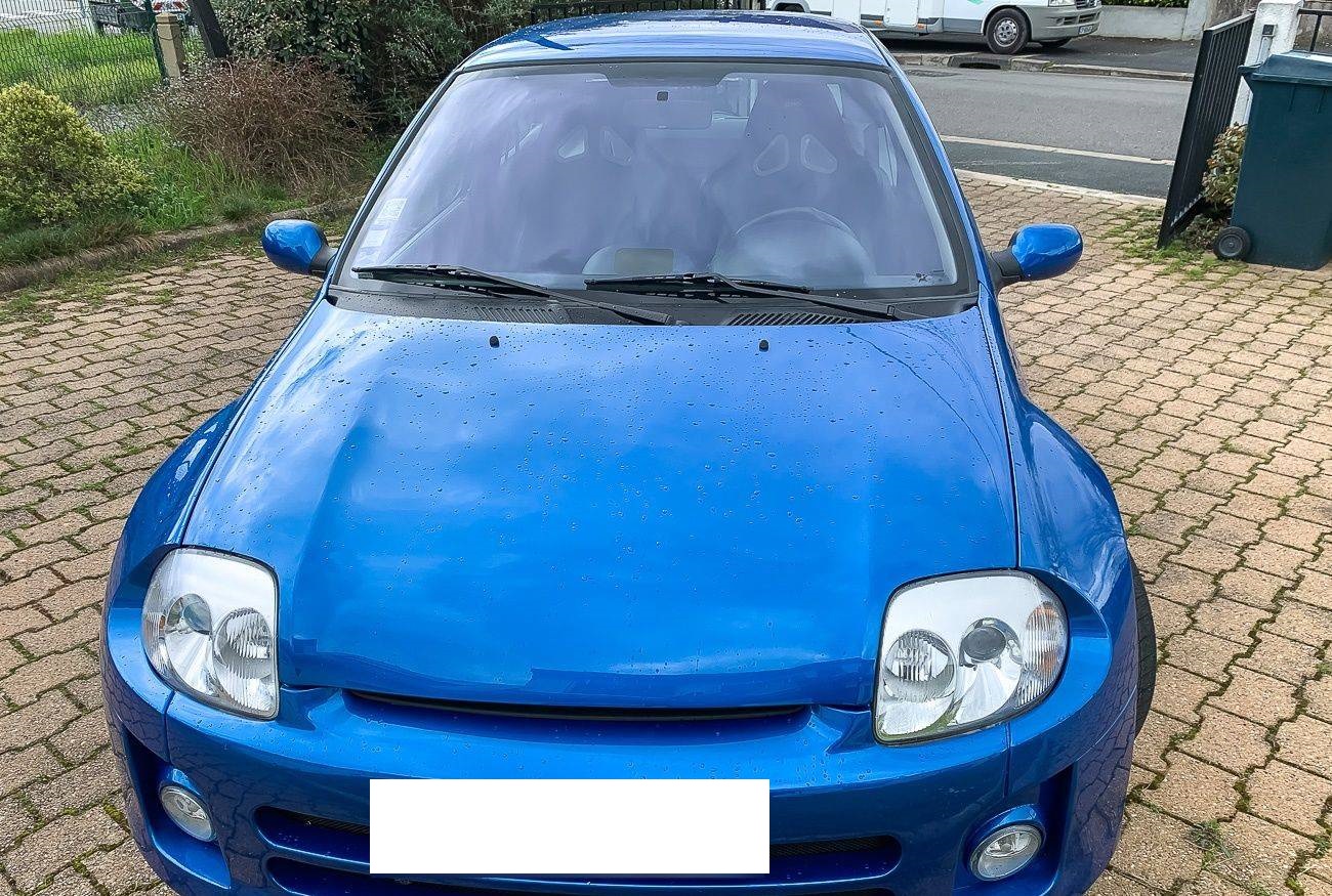 On the outside, the seller states that the vehicle is in good condition. The blue bodywork shows only a few defects, which can be seen in the gallery.
