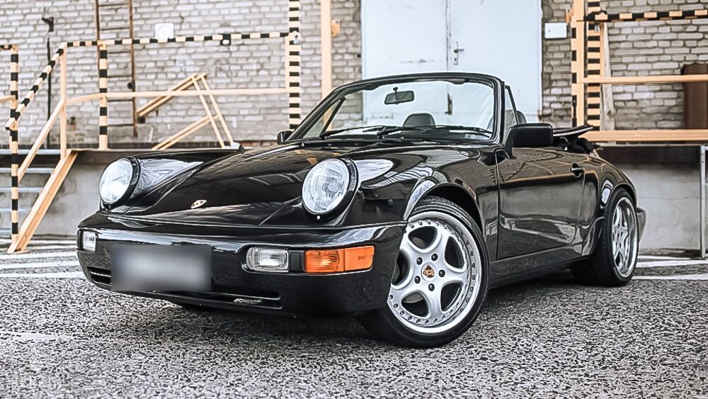 On the outside, the seller says that the vehicle is in good condition. The black bodywork has only a few defects that can be seen in the gallery. The seller notes that the paint on the rear-view mirrors is peeling. He points out that the previous owner did a complete repaint. He added that the soft top had recently been replaced. Photos of the underbody are available in the gallery.