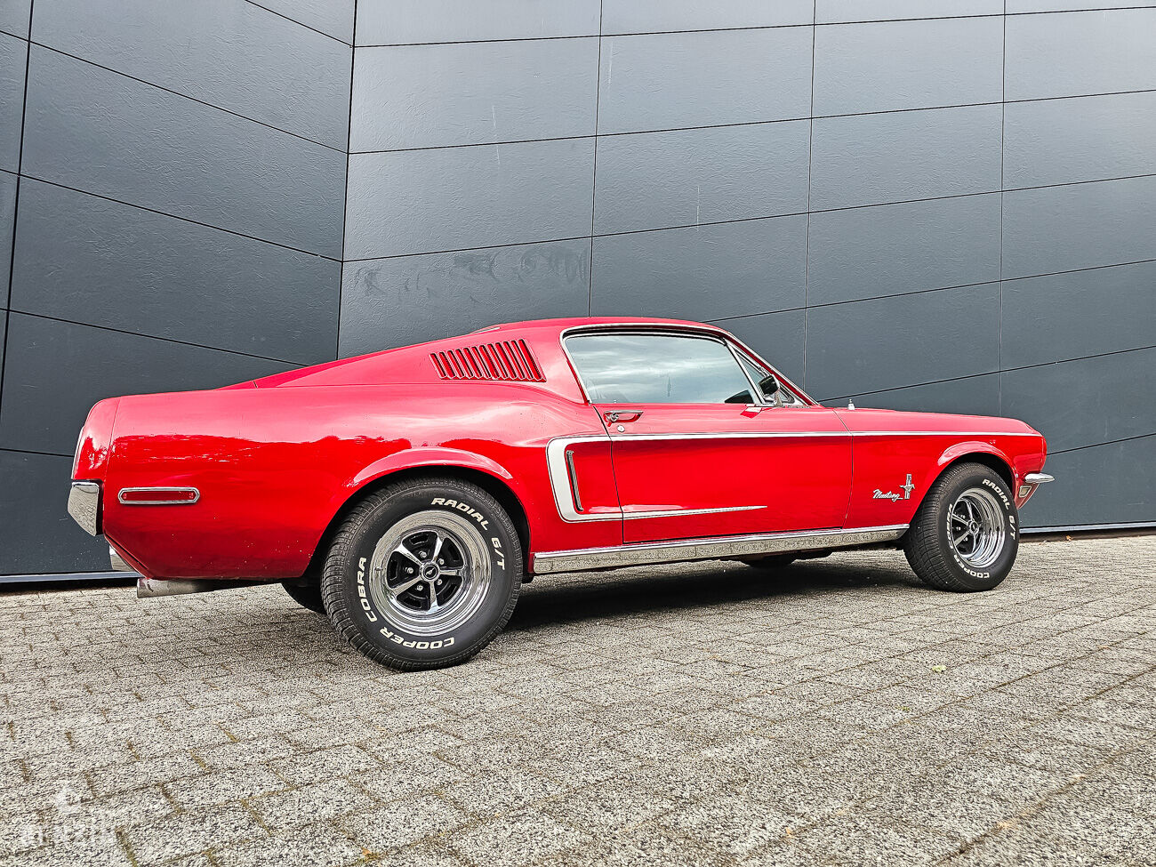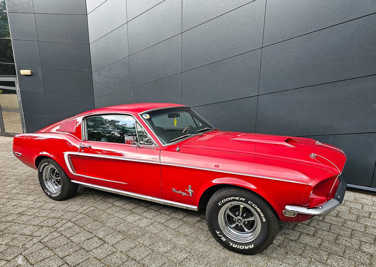 On the outside, the seller says that the vehicle is in good condition. The red bodywork has only a few defects that can be seen in the gallery. He reports paint defects on the Mustang logo on the boot. The seller states that the car has been repainted in the USA in the past. The car has been polished and the chrome is in good condition. Photos of the underpinnings are available in the gallery.
