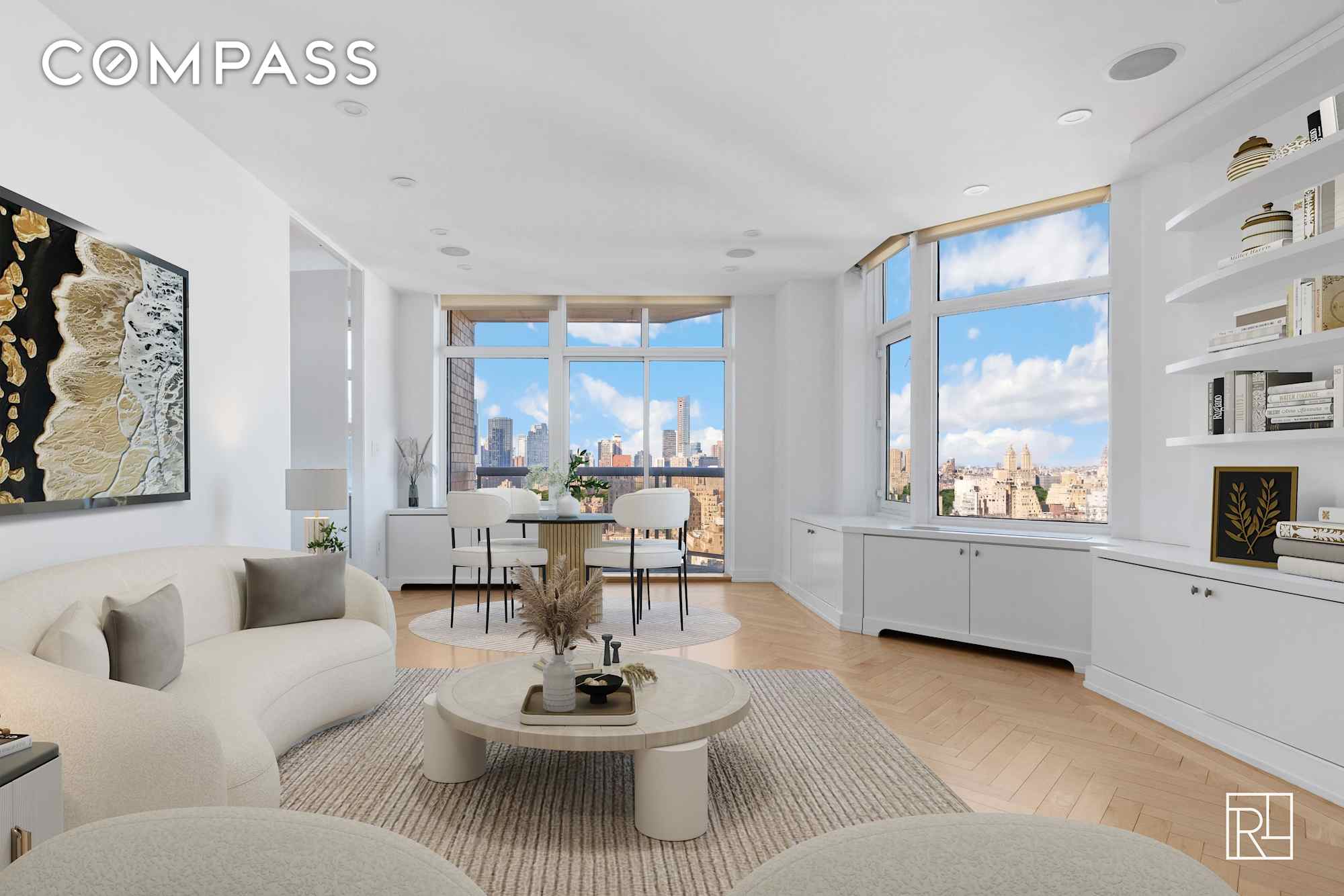 A SKY HIGH SANCTUARY with TWO BALCONIES and CENTRAL PARK VIEWS! Welcome to Residence 2606, a remarkable, split 2-bedroom, 2.5-bathroom condo perched on the 26th floor of The Royale, a premier full-service high-rise in Lenox Hill, Upper East Side. This exceptional home is bathed in natural light, with two private balconies offering sweeping views of Central Park, Billionaire s Row, and the iconic Central Park West towers. The sun-drenched living and dining area features elegant chevron wood floors and custom-built cabinetry. Spanning over 22 feet, this gracious space flows seamlessly for relaxing and entertaining. Step onto the west-facing balcony and bask in golden sunsets over Central Park a perfect backdrop for evening gatherings or quiet moments. The windowed kitchen boasts premium appliances a Sub-Zero refrigerator, Dacor gas stove and oven, Bosch dishwasher, and GE Profile microwave. Stone countertops and a matching backsplash add natural elegance, while ample storage, a double sink, and a smart layout make it ideal for daily cooking and entertaining. The serene primary suite features plank flooring, expansive west and north-facing windows, and a private balcony with breathtaking views. Four custom-built closets, including a secure safe, provide abundant storage. The four-piece, windowed en-suite bathroom offers a spa-like retreat with a double vanity, soaking tub, glass-enclosed shower, granite finishes, and recessed lighting. The second bedroom enjoys a double-door entry, a granite ensuite bath, custom closets, and sweeping west and north-facing views of Central Park and the city skyline. A powder room for guests, subtly tucked away from the living room, features granite finishes, mirrored walls, and recessed lighting, adding a sophisticated touch to this elegant home. Additional luxuries include 9-foot ceilings, recessed lighting, window treatments, custom closets throughout, and an HVAC system in every room for year-round comfort. Washer and dryer facilities are conveniently located on every floor. The Royale Condominium is a full-service, white-glove building offering an array of luxury amenities, including 24-hour doorman/concierge, fitness center, entertainment room with a grand piano and bar, bike room, package room, storage room, and valet services. Additional conveniences include laundry on each floor, on-site resident manager, parking garage, and a beautifully landscaped entrance. Nestled in Lenox Hill, the heart of the Upper East Side, this pet-friendly building is just minutes from multiple transportation options: F/Q/N/R/W/4/5/6 subway lines, cross-town buses, the tramway, Queensboro Bridge, and . Enjoy proximity to fine dining, shopping, movie theaters, and popular supermarkets such as Trader Joe s and Whole Foods. Nearby fitness and wellness options include Tracy Anderson, Equinox, and Barry s, while unique spots like Drybar, Serendipity, the Nuts Factory, and Japanese food markets complete the vibrant lifestyle. A perfect opportunity to call this prestigious address home you can have it all!