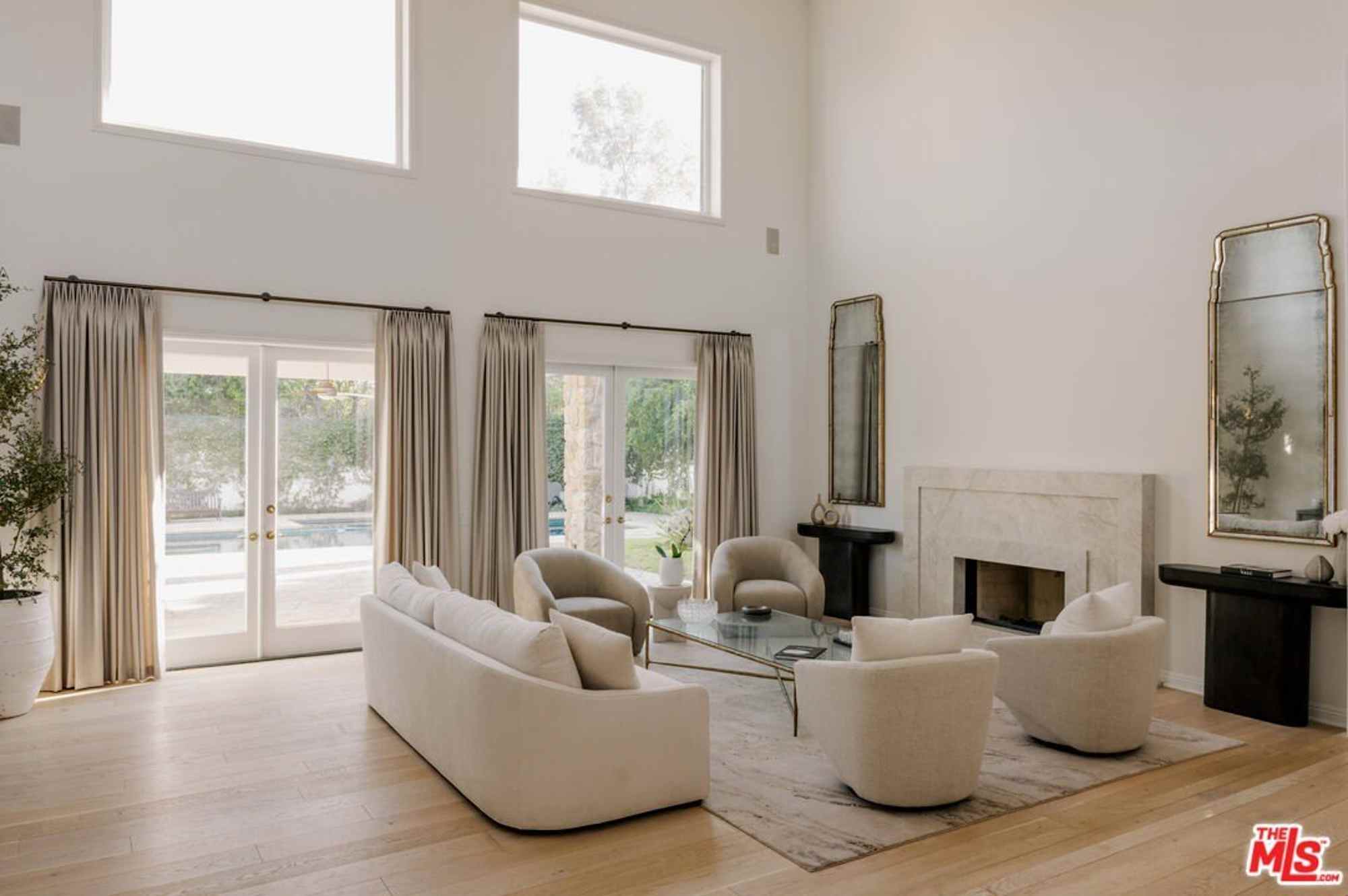 Discover this stunning Brentwood estate. This newly renovated home is perfect for long-term living in a prime, central location. Nestled on a more than half-acre flat corner lot, this beautifully updated two-story Transitional-style home offers privacy and sophistication. A gated, semi-circular motor court and attached four-car garage provide both convenience and security. Step through grand double doors into a dramatic two-story living room with a cozy fireplace, setting the tone for elegance throughout. Adjacent is a library/study featuring custom bookcases, its own fireplace, and French doors opening to the serene backyard. The formal dining room is ideal for hosting, situated just across from the spacious gourmet kitchen, which boasts top-of-the-line finishes and ample room for meal prep and casual dining. A bright and inviting family room, complete with built-ins and a fireplace, also opens to the backyard, creating seamless indoor-outdoor flow. The luxurious owner's suite is a retreat unto itself, featuring a sitting area, fireplace, and dual spa-like baths with walk-in closets. Additional highlights include a separate guesthouse with a full bath and kitchenette perfect for visitors, extended family, or a private office. The expansive backyard is thoughtfully designed for relaxation and entertaining, with lush grassy areas, a built-in BBQ station, a heated pergola with lighting, and a sparkling pool and spa. Situated just blocks from shopping, top-rated schools, major freeways, and public transit, this home offers convenience and comfort, meticulously cared for by its original owners.
