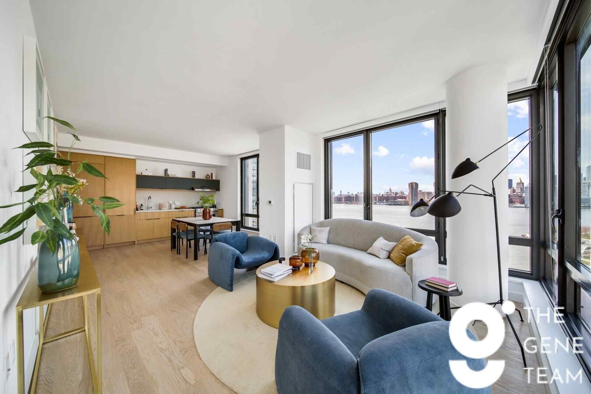 Two bedroom apartment located on the historic Greenpoint Landing. While floor to ceiling windows greet you with dazzling views, the luxurious finishes will ground you in comfort, making you feel at home. The wood floors in the living spaces complement the natural oak of the kitchen cabinets, the polished chrome fixtures match the stainless-steel appliances, and the sleek bathroom tiles complete the luxuriously modern aesthetic. Take a load off while doing a load in your BOSCH stacked washer-dryer, and revel in roomy layouts that welcome your growth. The building offers an array of amenities including a fully equipped Fitness Center, Yoga and Cycle studio, Outdoor , Indoor pool lounge with refreshment station and TV, reservable for your private events, Urban Room for resident meet-ups, Resident and community dog run on the Esplanade, Generous co-working space with adjoining terrace, Air pool deck and terrace, Grilling stations with prep table under the pergola and nearby dining tables, Private Lounge with chefs demo kitchen overlooking the East River and Manhattan skyline, and much more! The building offers an array of amenities including a fully equipped Fitness Center, Yoga and Cycle studio, Outdoor , Indoor pool lounge with refreshment station and TV, reservable for your private events, Urban Room for resident meet-ups, Resident and community dog run on the Esplanade, Generous co-working space with adjoining terrace, Air pool deck and terrace, Grilling stations with prep table under the pergola and nearby dining tables, Private Lounge with chefs demo kitchen overlooking the East River and Manhattan skyline, and much more!