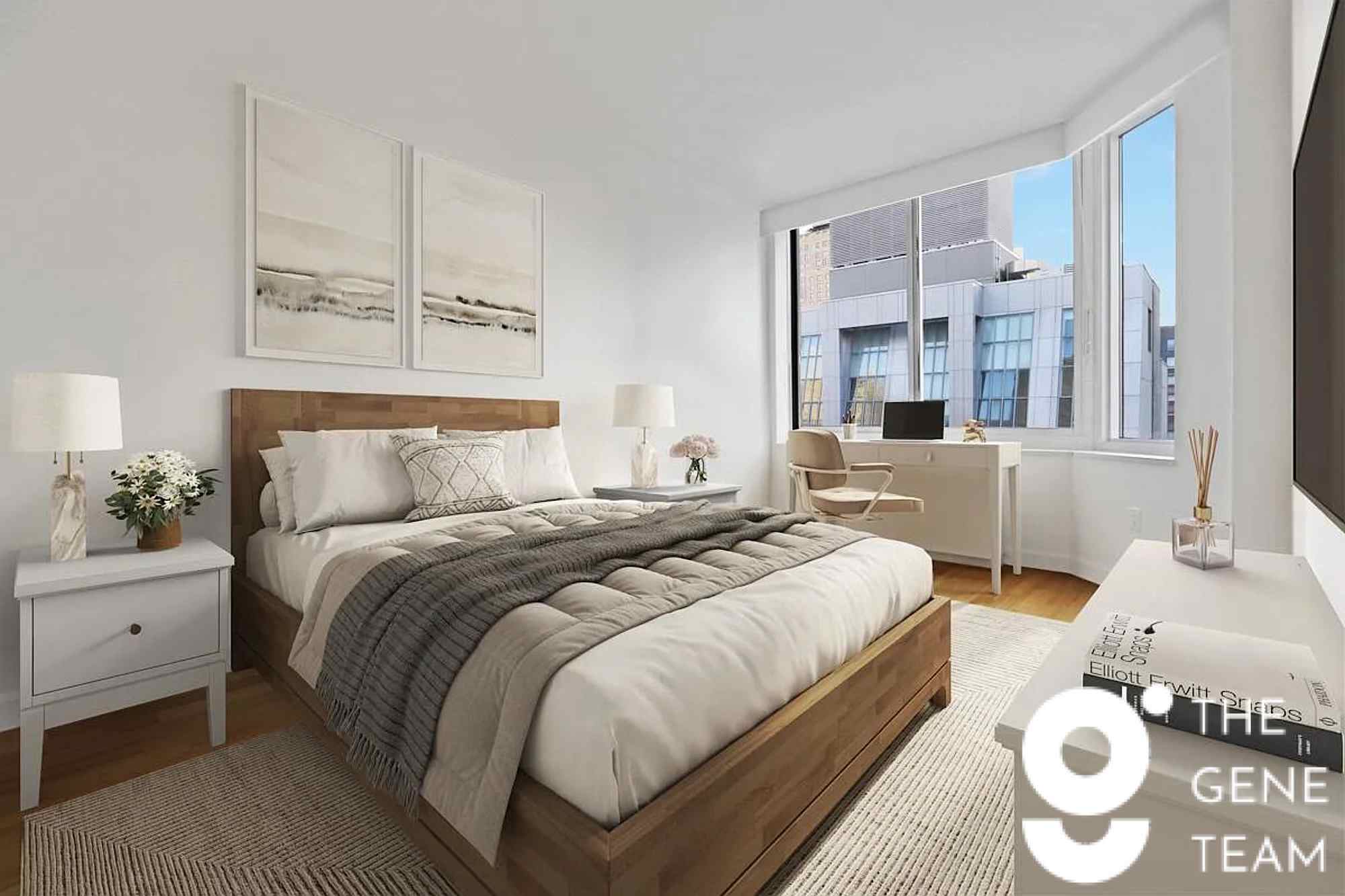 Spacious and well designed two bedroom apartment featuring 9-foot ceilings, custom closets, bamboo plank floors, full size washer and vented dryer, marble bathrooms, and fully equipped designer kitchen. The eco-friendly building offers a state-of-the-art fitness center with lap pool, yoga room, screening room, lounge with kitchen and terrace, children's playroom, and two furnished, landscaped roof decks with succulents and heat-reflective pavers. The eco-friendly building offers a state-of-the-art fitness center with lap pool, yoga room, screening room, lounge with kitchen and terrace, children's playroom, and two furnished, landscaped roof decks with succulents and heat-reflective pavers.