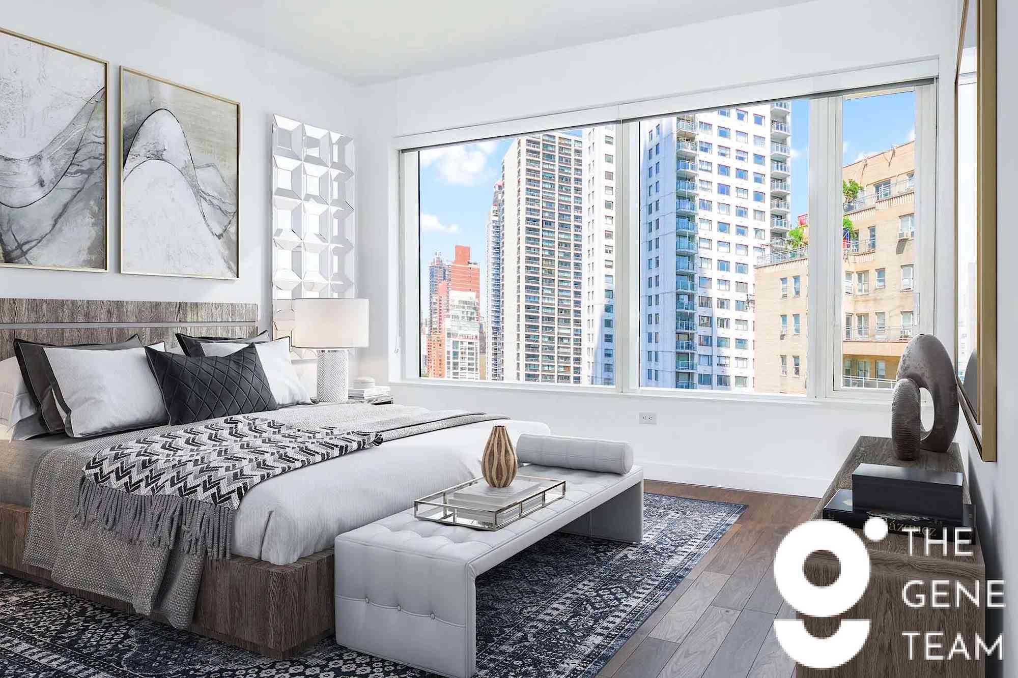 This gorgeous condo-finish two bedroom apartment features oversized windows that offer an abundance of natural light, walnut wood flooring, generous closet space, a moveable island kitchen with quartz countertops and concealed top of the line appliances, in-unit Bosch washer/dryer and elegant spacious bathrooms. This building features luxury amenities such as a lavish landscaped terrace with gas grills and fire pit, private and group dining areas and sun loungers, a resident lounge with game room and conference room, an indoor rock climbing wall, indoor basketball court, children's playroom, 24-hour concierge and a beautiful state-of-the-art fitness center featuring Peloton bikes and other industry-leading gym equipment. It also has a Whole Foods on-site, doorman, package room, convenient resident app and much more. This building features luxury amenities such as a lavish landscaped terrace with gas grills and fire pit, private and group dining areas and sun loungers, a resident lounge with game room and conference room, an indoor rock climbing wall, indoor basketball court, children's playroom, 24-hour concierge and a beautiful state-of-the-art fitness center featuring Peloton bikes and other industry-leading gym equipment. It also has a Whole Foods on-site, doorman, package room, convenient resident app and much more.