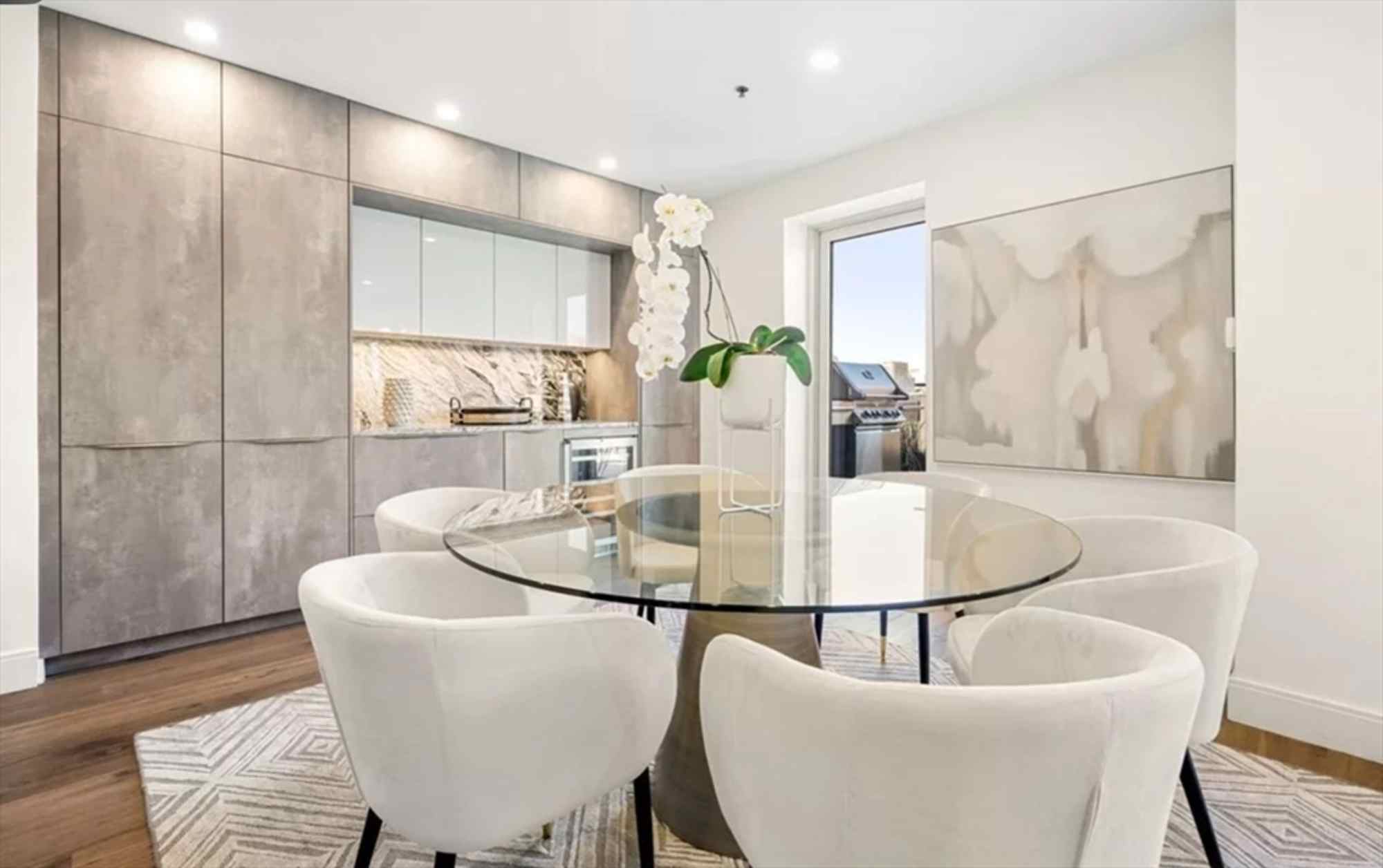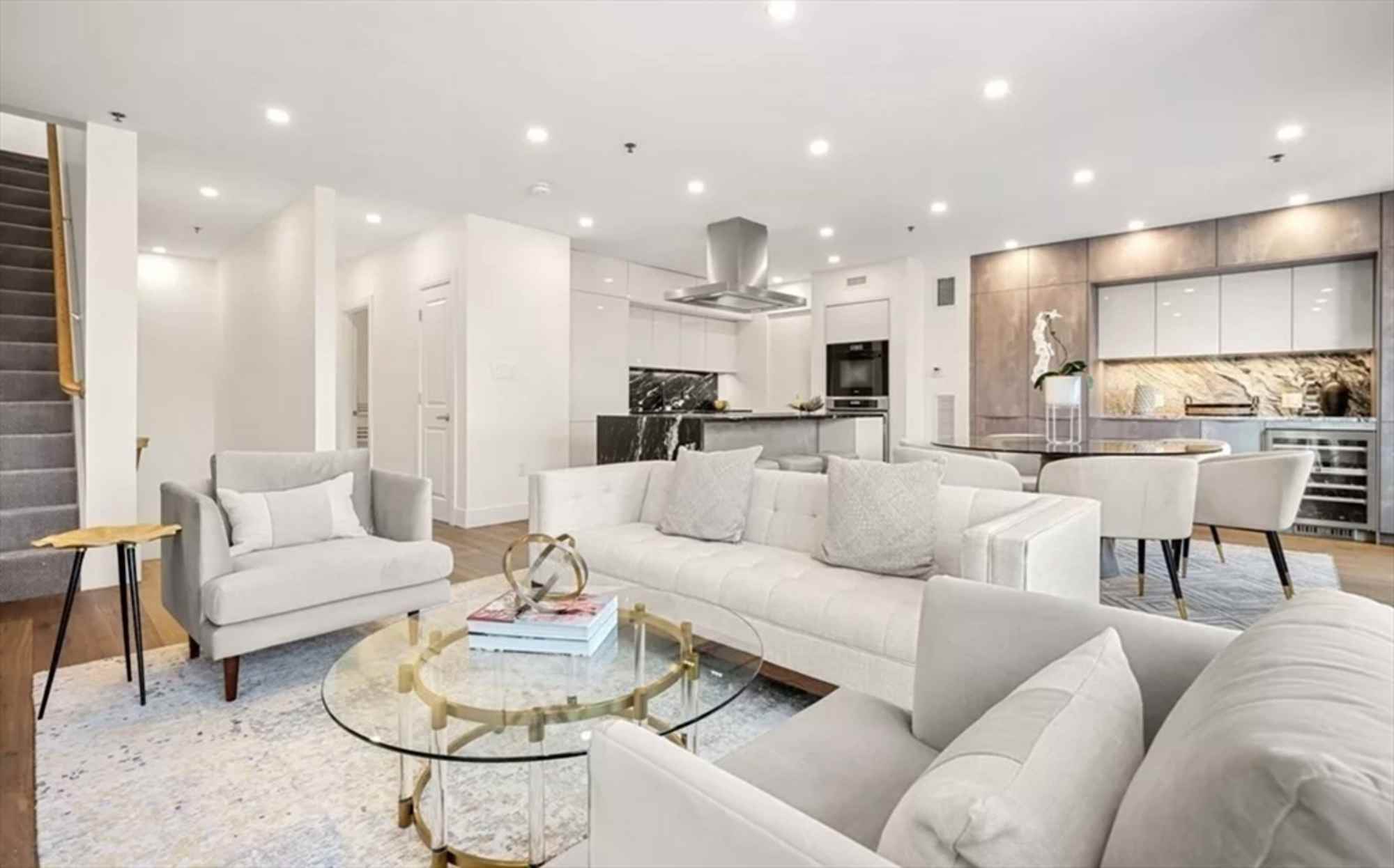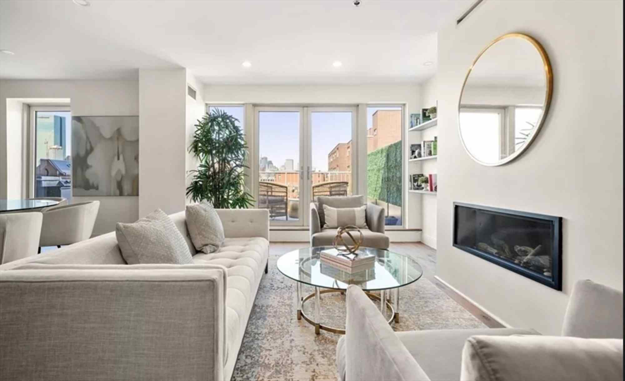 Move in before March, you get one month free! This immaculate 1,541 SF penthouse comes with two stunning walk-out roof decks: one with a gas-grill hookup; the other a sprawling expanse with sweeping skyline and sunset views. Designed by Divine Design Center, the renovated chef's kitchen is clad with premium finishes and fixtures including soapstone countertops, Leicht cabinets, and professional-grade appliances. Two bedrooms, two full baths, a dry bar with a wine fridge, and generous living space deliver the perfect setting for relaxing and entertaining. An office/den can function as a guest room. Special highlights include a gas fireplace, in unit laundry, grills on deck, tons of storage space, and the convenience of TWO garage parking space and a individual locked up storage room. A stone's throw from sought-after parks, specialty shops, and restaurants, this is the ideal way to enjoy a lifestyle of luxury in the South End. Photos are previous stage.