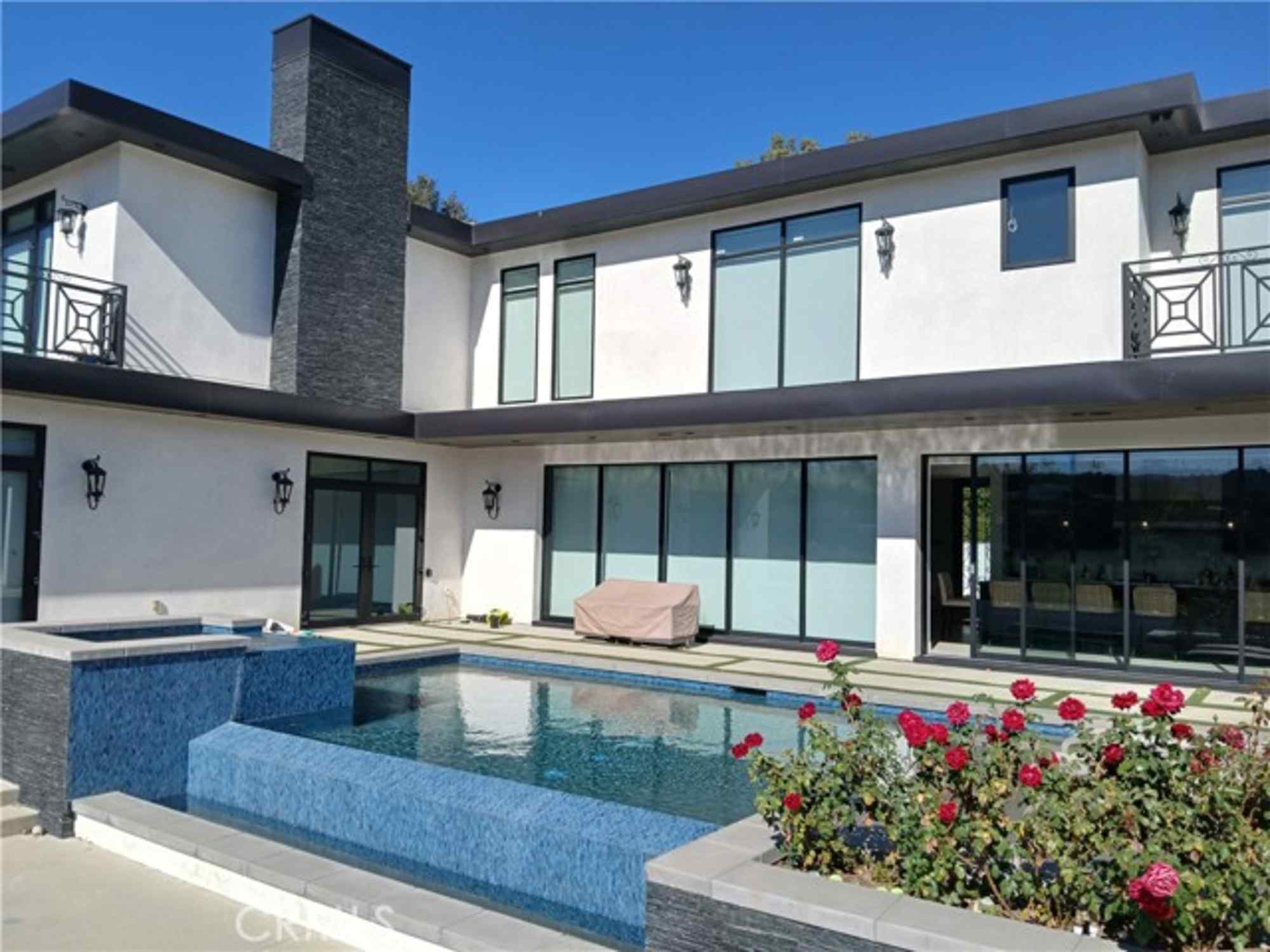 Fully furnished Constructed IN 2022 Stunning 7,300-s-foot home built in 2022 majestically seats atop serene and highly coveted Royal Oaks Hills. Upon arrival, you'll be greeted by the seclusion and its lush landscape, gated, lit-up driveway and fully enclosed property. Enter the 10 foot entry door into a sophisticated view of the expansive living space, highlighted by an open custom layout, floor-to-ceiling Fleetwood pocket sliding doors and floor to ceiling windows, showcasing the sweeping views of mountains and city lights. High ceilings, with the incredible commercial-grade restaurant-style kitchen with a sub-zero signature line, a large center island, marble countertops, custom cabinetry, and fully equipped stainless steel appliances. Floor-to-ceiling windows and a dual-sided fireplace complementing the family room/theater. Each bedroom is designed with engineered Oak floors, coffered ceiling lights, glass doors, and a custom en suite bathroom with varying designs. Through the pocket sliding doors There are 6 handsome bedrooms, 4 bedroom with 2 1/2 baths downstairs with two master suites upstairs each with its own full ensuite bathroom and walk-in closet, are located down a hallway to the right. The master bedroom boasts a fireplace, walking his and hers closets, and a breathtaking master bath with custom tile work, soaking tub, and walk-in shower with dual shower heads.