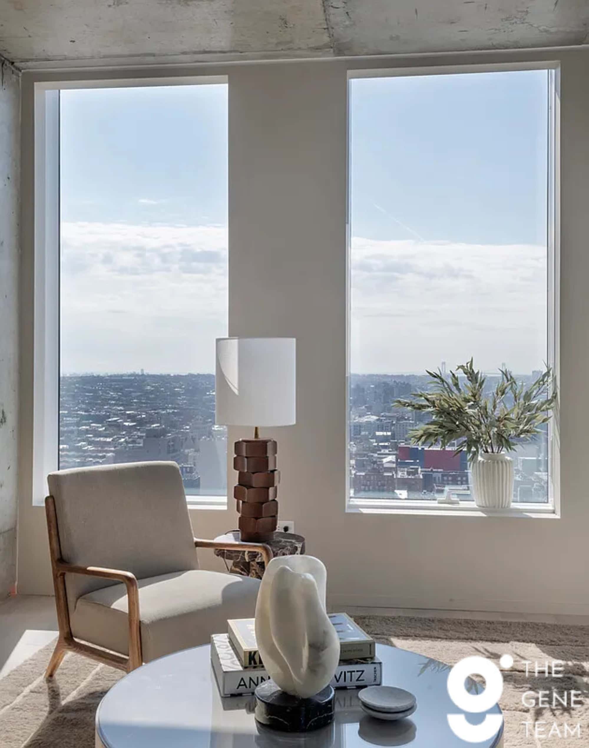 Two bedroom apartment with oversized triple-pane windows, plenty of natural light, and views of the historic brownstone Brooklyn. Apartment features include oak wood flooring throughout, in-unit washer and dryer, high ceilings, and Ecobee smart thermostats. The custom designed Italian kitchen comes with a fully integrated cabinetry, built-in pantry, Silestone countertops with tile backsplash, induction cooktop, wall oven, and concealed microwave. Together with integrated appliances your kitchen is clean, considered and toxin free. Building amenities include: 24 Hour Attended Lobby Coffee Shop 3,000 SF Gym Yoga Studio Grow Room Workspace Playspace Reservable Living Room, Kitchen and Terrace Reservable Screening Room 42nd floor Rooftop Pool Reservable Cabanas with Grills Sky Lounge, Kitchen with Cabanas Bodega by TULU Pet Wash Mail and Package Room Community Concierge Bike Room Laundry Building amenities include: 24 Hour Attended Lobby Coffee Shop 3,000 SF Gym Yoga Studio Grow Room Workspace Playspace Reservable Living Room, Kitchen and Terrace Reservable Screening Room 42nd floor Rooftop Pool Reservable Cabanas with Grills Sky Lounge, Kitchen with Cabanas Bodega by TULU Pet Wash Mail and Package Room Community Concierge Bike Room Laundry