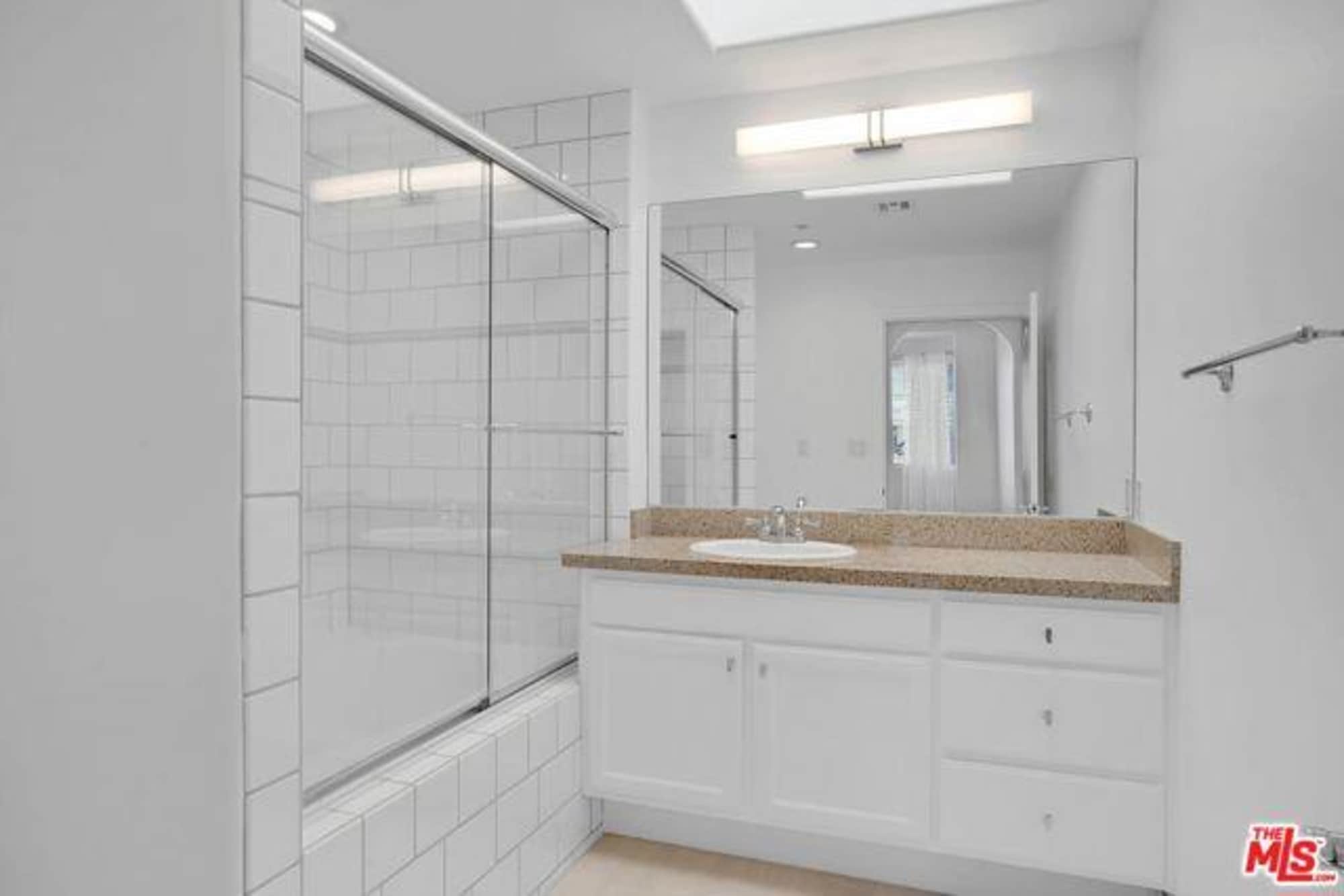 Top floor and turn key 2 bedroom, 2 bath with soaring 10 foot ceilings, lovely light and spacious room proportions. Beautiful hardwood floors throughout, recessed lighting, high end finishes, granite countertops, dishwasher, microwave, stainless steel appliances. This unit also features a private balcony, gas fireplace, and in-unit washer and dryer. The meticulously maintained unit features a fountained courtyard and two tandem dedicated parking spots. Centrally located in the heart of Brentwood near the farmers market, Brentwood golf course and track, shops, dining, grocery and easy access to transit. Owner pays for trash and maintenance. Cats upon approval.