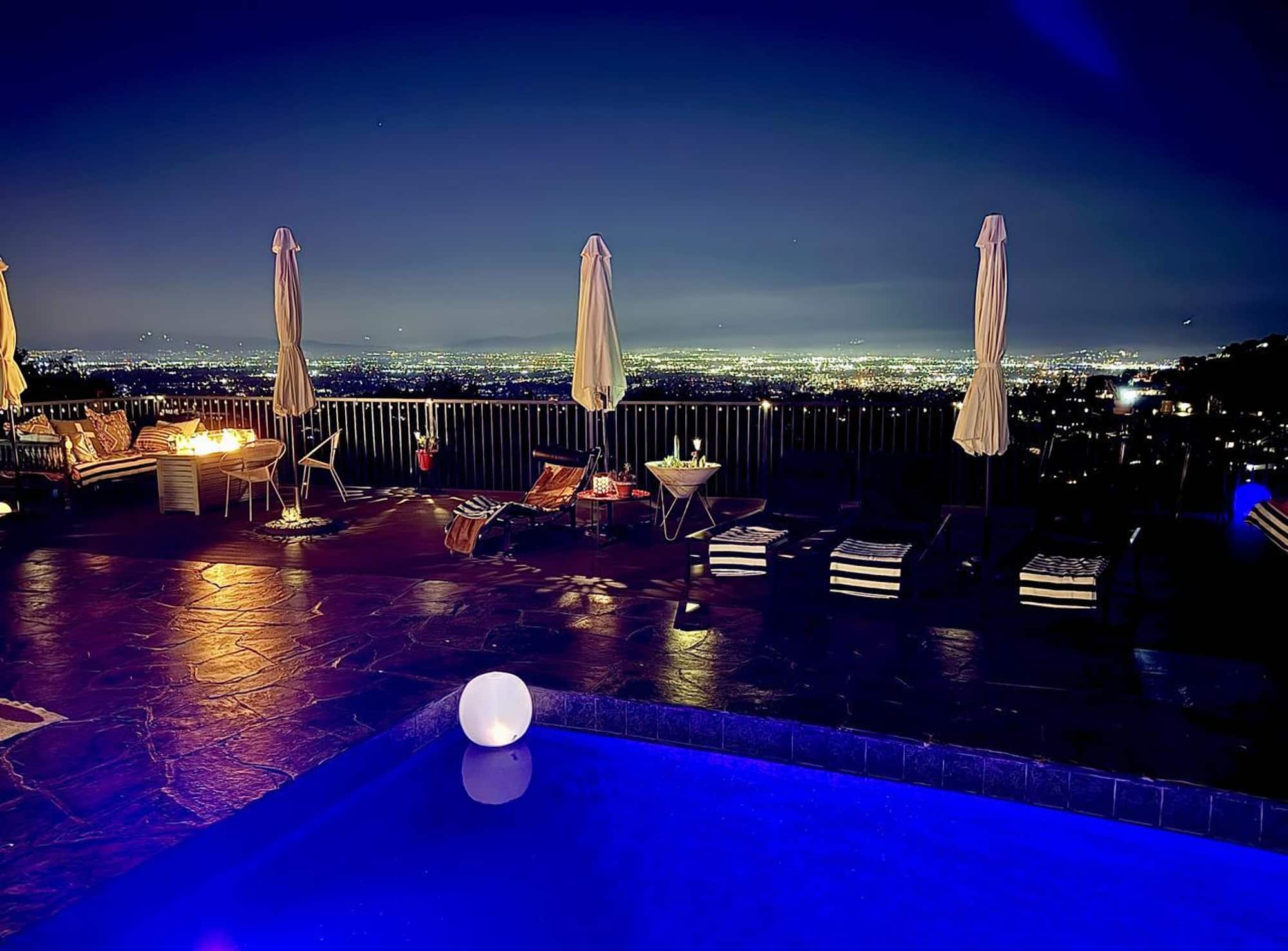 Looking for a cosy cool family friendly house in a great location, close to stores, sc hools, restaurants & hiking? With the best vibe ever? Walk in & imagine gorgeous evenings on the HUGE deck or in the heated pool watching the twinkling lights below. FANTASTIC view. Five minutes from . Gated. V close to main roadA glamorous, hip, open plan space. 4 beds/3 baths. 6 smart TV's & heated pool.Eclectically furnished. Cool art.Oversized living room w/ fireplace flows to big eat-in kitchen. A cool mid-century modern house that's perfect for both families or groups on holiday. Cosy and cool- a house to chill, watch Netflix and play scrabble.Very centrally located right in the heart of the Hollywood Hills, it's incredibly close to both Hollywood, Beverly Hills and Studio City.There are many cafes, bars and restaurants nearby along with many of the city's best hiking trails. Unrestricted parking on a quiet street..very private and gatedWork friendly with printer!Eat-in kitchen, a booth, sofa & TV ....6 TVs in all.Hi speed internet. There are four bedrooms - one with a king size bed and three with queen size beds, three bathrooms plus a huge living room for entertaining that flows seamlessly into the open-plan kitchen/seating area...a separate dining table for formal dining and several tables outside for eating/drinking. (Note- four actual beds, a sofa bed, 2 blow up beds and several sofas.)Great location for business associates to gather for meetings, perfect for a yoga retreat, a graduation, an anniversary, a family holiday or a romantic getaway!! The house is quite special and cosy- with a wood burning 'gas' fireplace. . NOTE-there is a Ring doorbell/camera device in the front courtyard and another at edge of deck at the suggestion of Airbnb which means activity in front courtyard and pool can be seen for security and safety purposes.Just minutes from either Studio City (and its fabulous Japanese restaurants, shopping and Sunday Farmers Market) and Universal City in one direction---or 5 minutes down Laurel Canyon to and the famed Sunset Strip area and etc in West Hollywood....or Mann's Chinese and the hip Hollywood area, Silver Lake and on downtown.A few minutes in the opposite direction and you're in Beverly Hills, Bel Air and right on down to Pacific Coast Highway and the beach.The house has 6 flat screens, cable tv, wireless internet and local phone...plus gas BBQ grillThere is unrestricted parking on the street. Very central. Uber or drive a rental car to the house in the Hollywood Hills.Renter is responsible for all utilities (gas, water and power) and cable.First and last and deposit due at lease signing.