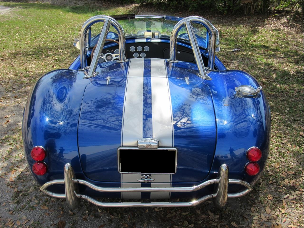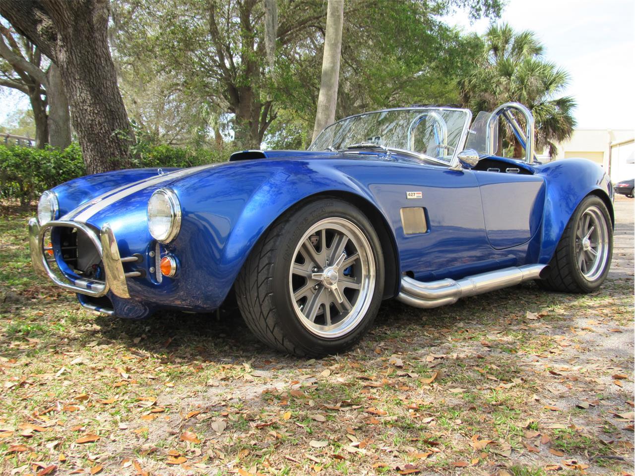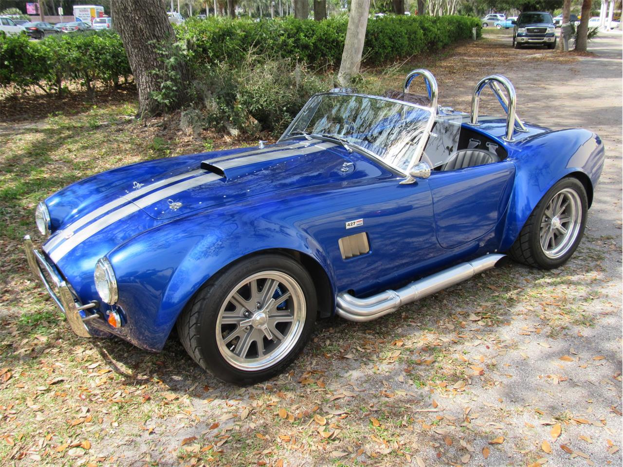 Blue Exterior w/ Silver Stripes Black Leather Interior 427 CI Top Oiler (Date Coded March 1965) 5-Speed Tremac Manual Transmission Original, date coded 1965 427 CI Top-Oiler, Original Ford Aluminum Intake Holley 750 Carb Disc Brakes Knock-Off Style Wheels. AM/FM/ MP3 Audio System Dual Roll Bars Racing Safety Harnesses.