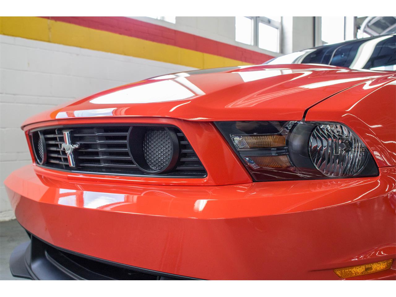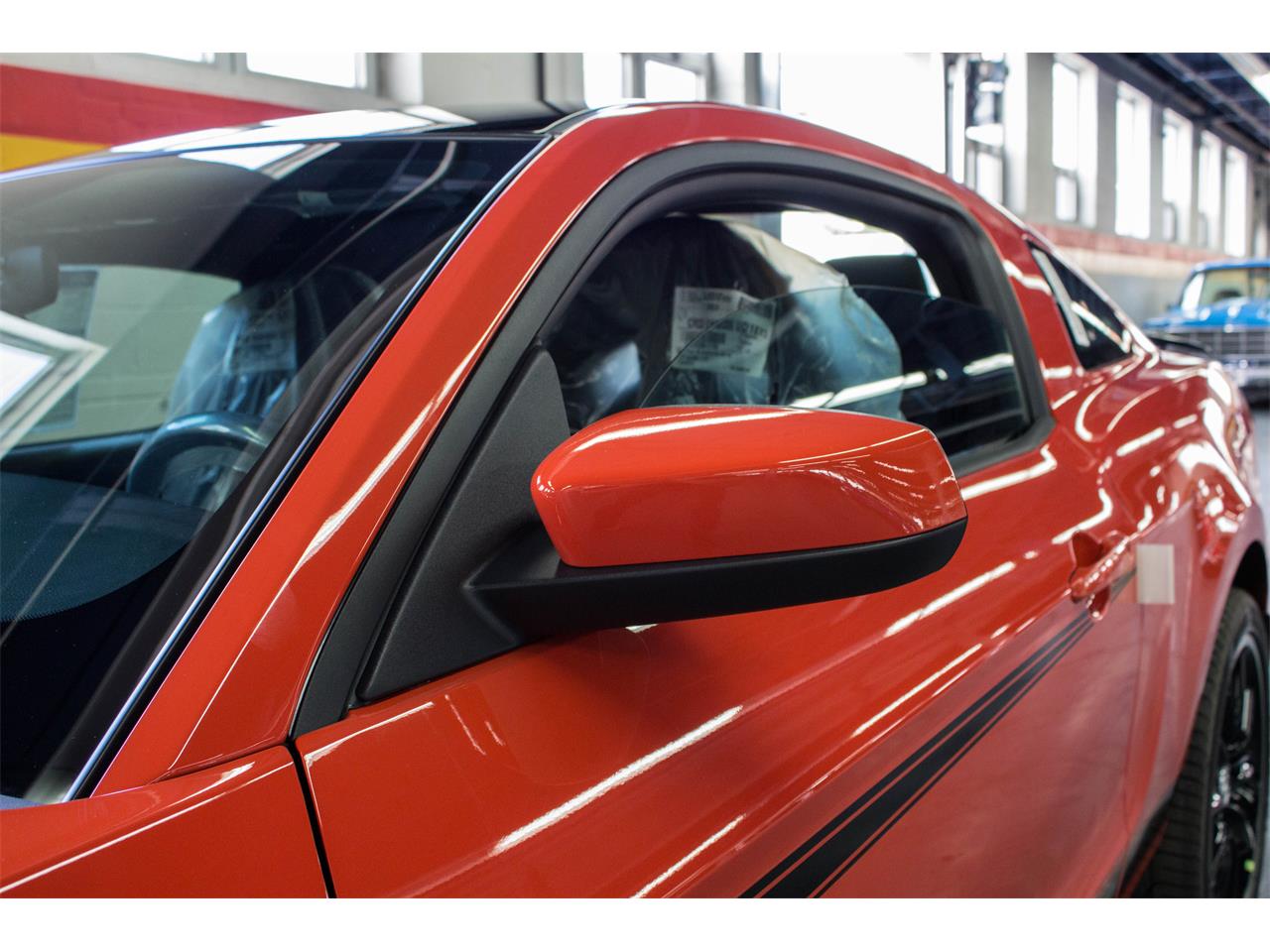 302 cubic inch 5.0L V8 has been brought from the standard 420 hp up to 444hp with 380lb/ft of torque thanks to quite a few adjustments such as an all aluminium lightweight engine block, dual overhead cams with 4 valves per cylinder, fully forged internals, a newly designed intake to deal out maximum air flow, fully adjustable shocks on all four corners and a 3.73 short gear ratio to help with hard and fast acceleration times. All of this helps the Boss reach a top speed of 155mph. Recaro seats not only provide an excellent seating position, but hold the driver firmly in place while simultaneously providing a comfortable place to be during longer road trips. The 6 speed manual gearbox is accessible through a short-throw shifter with a pleasing old school aesthetic. Mounted on the steering wheel are some of the functions we are now used to seeing, such as cruise control and entertainment unit commands. The wheel is also wrapped in alcantra to improve the sensation on the points of contact. While interior storage is ample (cupholder, door pockets and a large center console and glovebox) everything is camouflaged well with the rest of the interior design so as not to cause an eyesore. The Boss 302 is immediately distinguishable from regular Mustangs via the iconic “C-Stripe” or “Hockey Stick Stripe” for the 2012 and 2013 years respectively. The Quad exhaust (two out the back and two out the side) adds to the amplification of noise in the cockpit and creates a wonderfully chaotic roar for bystanders. A front splitter adds 90lbs of downforce at 120mph and keeps the front end firmly planted to the road, a small wing does the same for the rear end.