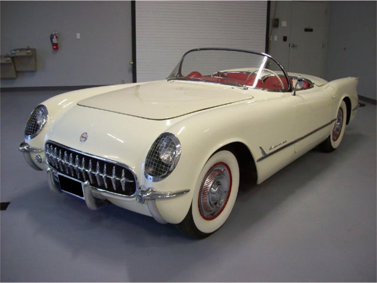 This nicely optioned Corvette comes with Polo White exterior paint with original red interior and beige top. Powered by the original correct-block 235ci Blue Flame 6-cylinder engine and automatic transmission. Rare triple chrome engine components. Runs & drive great.