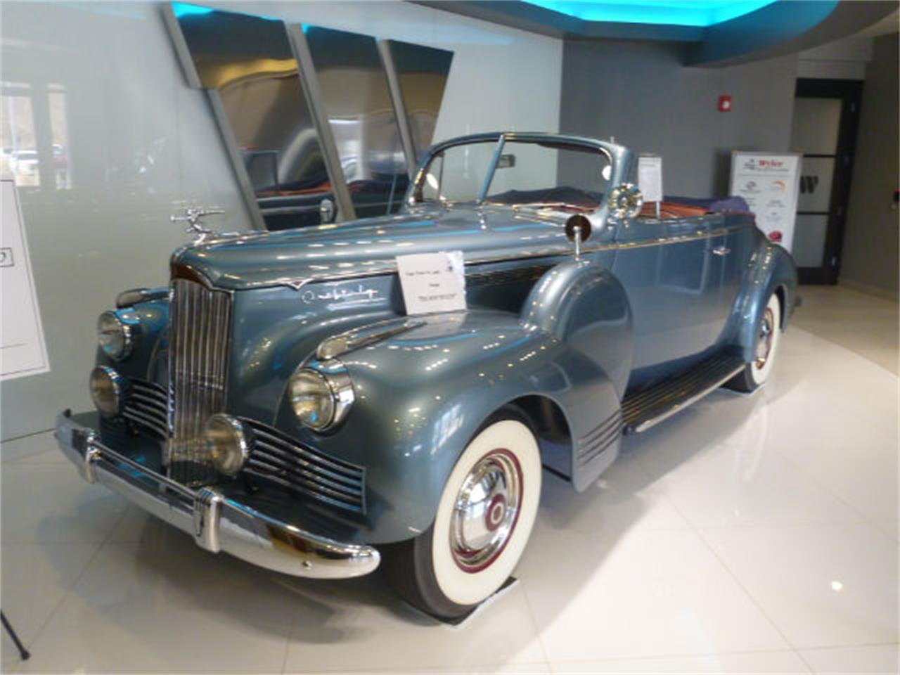 1942 Packard 160 convertible coupe authenticated by production dates and vehicle serial numbers. This is the last 1942 160 convertible built by the Packard Motor Company. The car features a 356/160hp, straight 8 engine with 3-speed manual transmission with overdrive. Although not available on production cars in 1942, this car is also equipped with dual carburetors believed to have been installed by Packard.