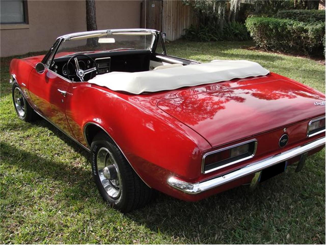 1967 Chevrolet Camaro Convertible 327 Automatic. Matching numbers. 8-Cylinder Engine. (M35) Powerglide Transmission. Superior condition. Parchment color original deluxe interior. Bolero Red exterior. Power top. Deluxe exterior trim.