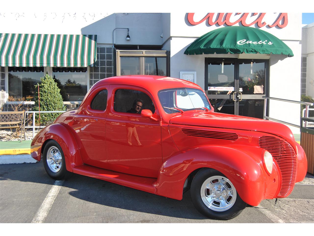 This is a 1938 Ford Deluxe Coupe with a very good body. It has Frenched tail light & Parking lights. Also a frenched licence plate, gas filler door & antenna. It is a Driver with still only 25,000 miles on it ! Legacy Wheels & Knockoffs. Tilt wheel, AC,PB,PS,& the Power Windows are run on the original Track which lets the glass come up & down leaving a vent opening. 350/350 with a larger cam, 400 turbo with a 3000 stall/ Walker radiator. This ford is a Super Ride & Driver ! ALL STEEL ! EVERYTHING ! I