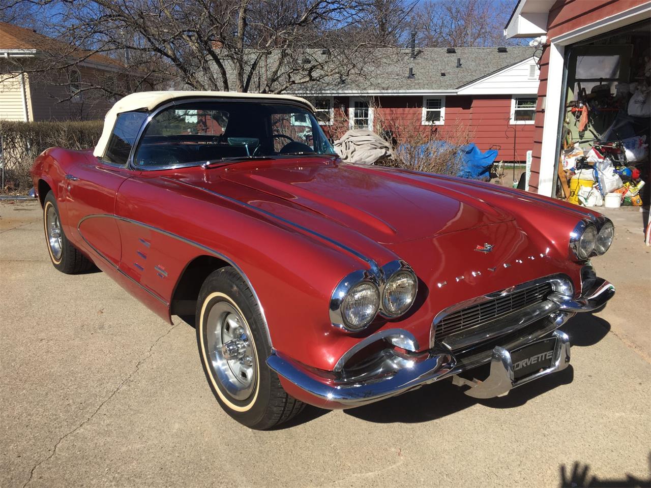 1961 Chevrolet Corvette. Exterior: Metallic Honduras Maroon. Interior: Black. Transmission: Manual 4 speed transmission. Engine: 283 engine - 275 HP 3/4 cam. Tires have great tread. All original- numbers matching, well maintained and garage kept.