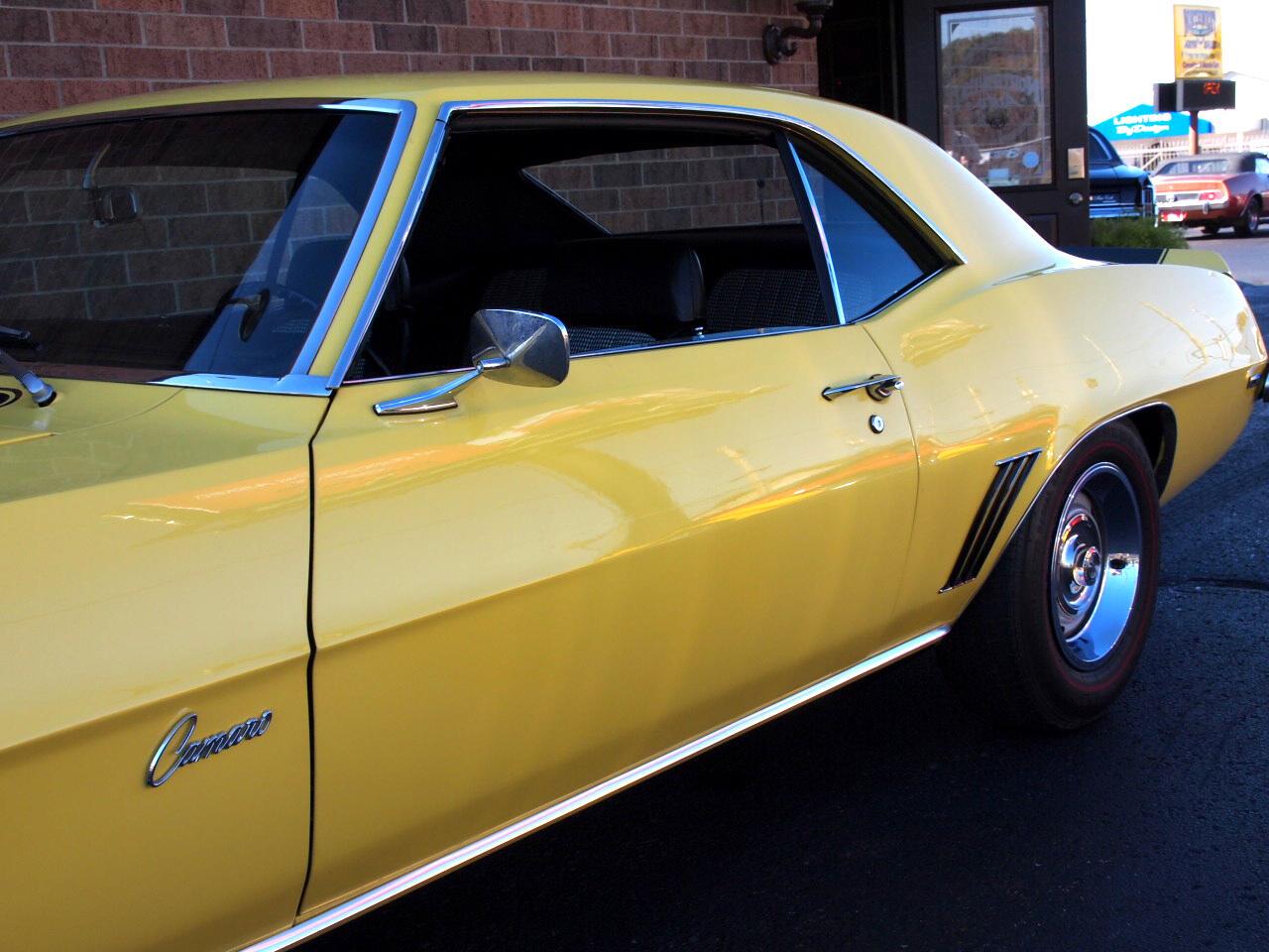 1969 Camaro Z28 powered by a 302 DZ motor with a 4 bbl carburetor Muncie 4 speed transmission and 3:73 rear end. Optional power steering power brakes floor console with gauge package and floor shift front disc brakes and a like new black and white houndstooth interior.