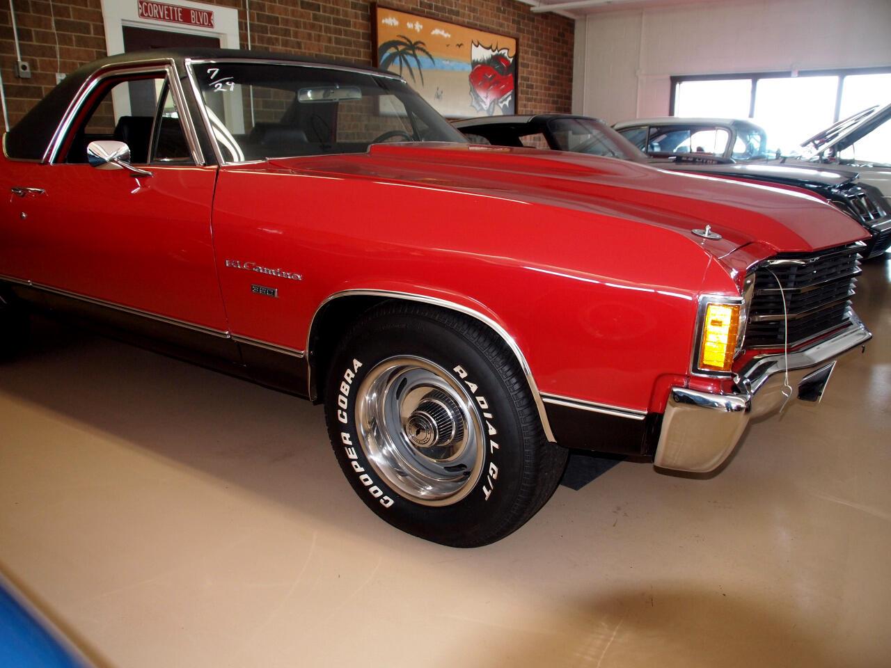 This great 1972 El Camino, 350 factory four speed with console tilt wheel power steering, power brakes with front discs, air conditioning and dual exhaust. Mechanically this car is excellent...there are no issues whatsoever. Brakes clutch steering and suspension check out with no problems...all passed our pre-inventory inspection with flying colors. The chrome on this car is excellent maintaining its original factory luster. This is a great vehicle to drive.