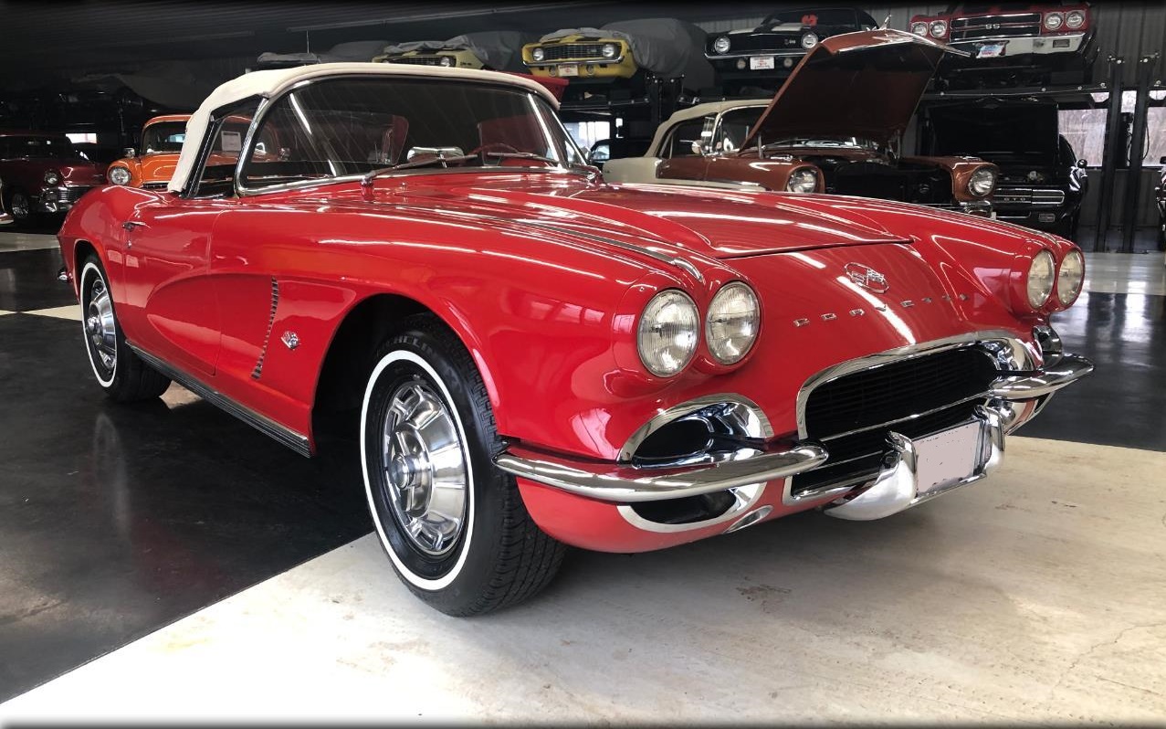 1962 Chevrolet Corvette, 18,492 miles. Power is supplied by a period correct 327 small block. Frame suspension are in great condition. Chrome and bright work is in excellent condition. This interior color is stunning seats carpet door panels etc are in terrific condition. To top off this gorgeous roadster is a beautiful white convertible top that goes well with the white walls.