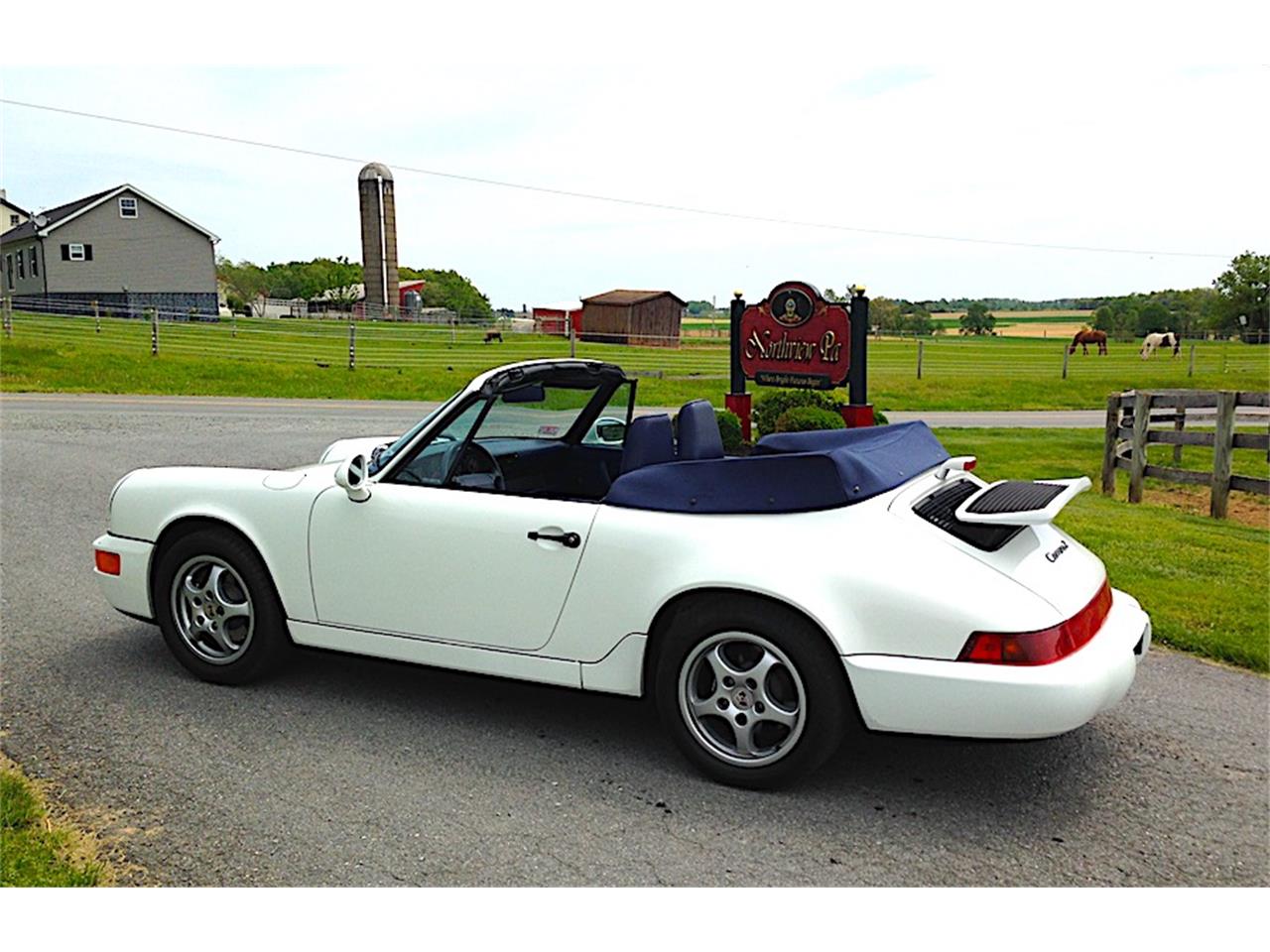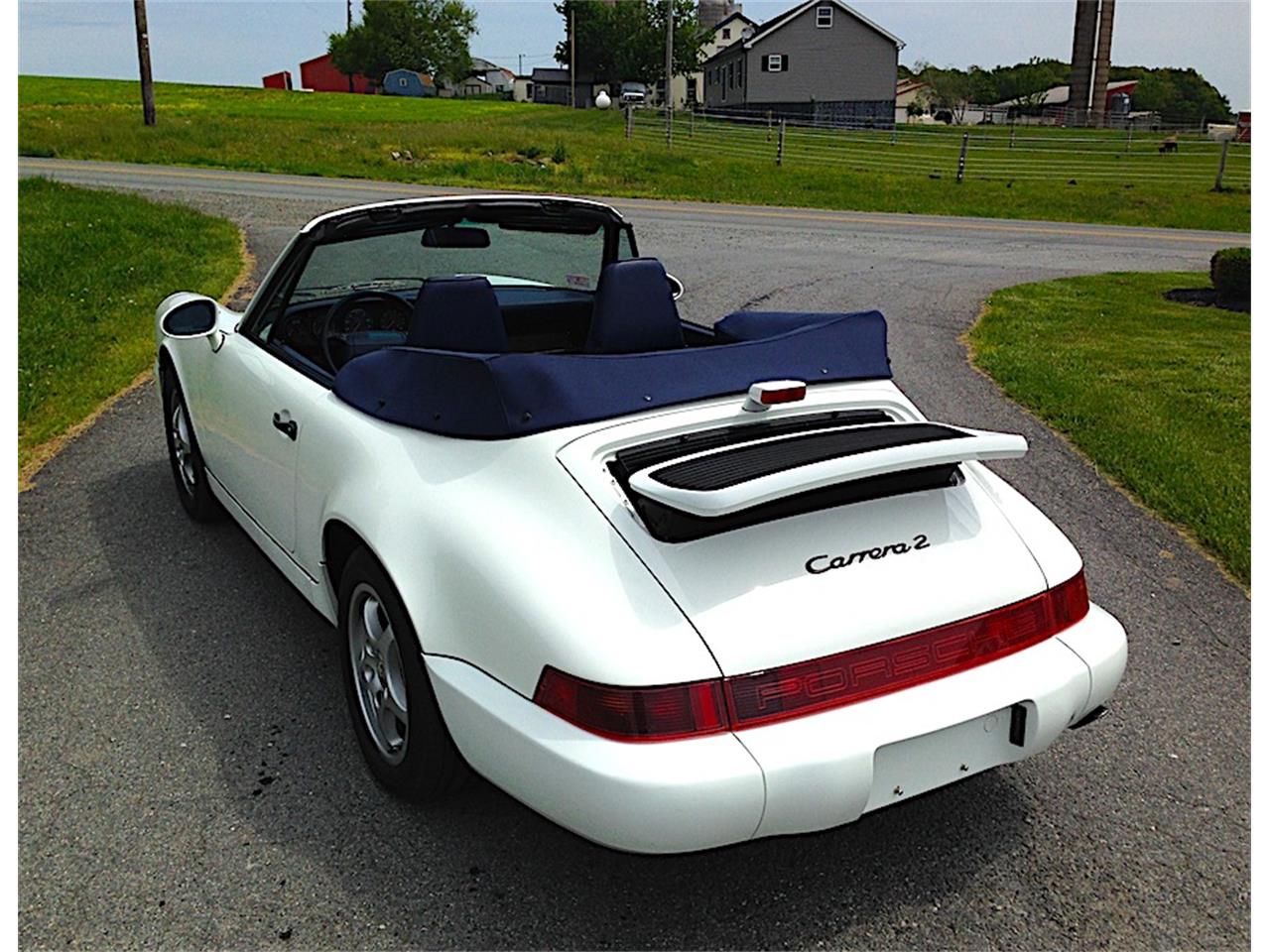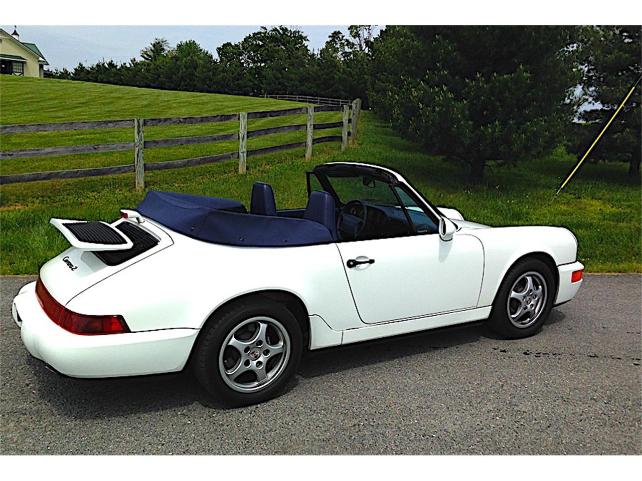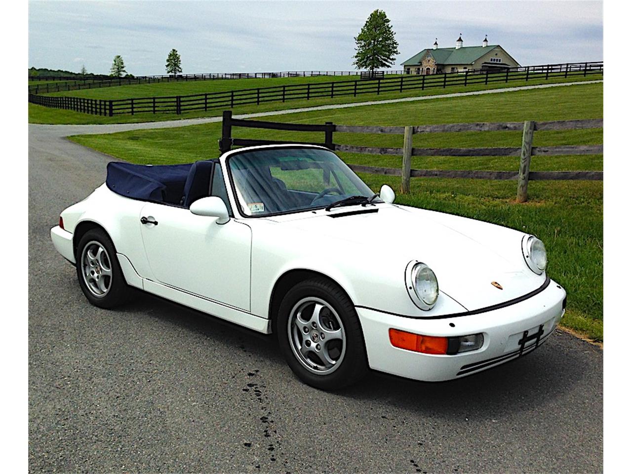 1992 Porsche 911 Carrera in Grand Prix white, with special Cobalt Blye Leather interior, Brite blue piping, and deviated trim color. Blaupunkt radio, Rear speakers w/ Amplifier system, Headlight washers, Automatic cruise control, Climate control air conditioning and heat, power seat, power /heated mirrors, power windows, central locking system with alarm, trip computer, one-button power top, Navy blue soft-top with matching boot, Airbags, Anti-lock Brakes, Fog/driving lamps, Fully tinted glass, Heated washers, locking glovebox, and rear luggage deck with dual locking storage boxes. Ready for summer fun, or add to your collection!