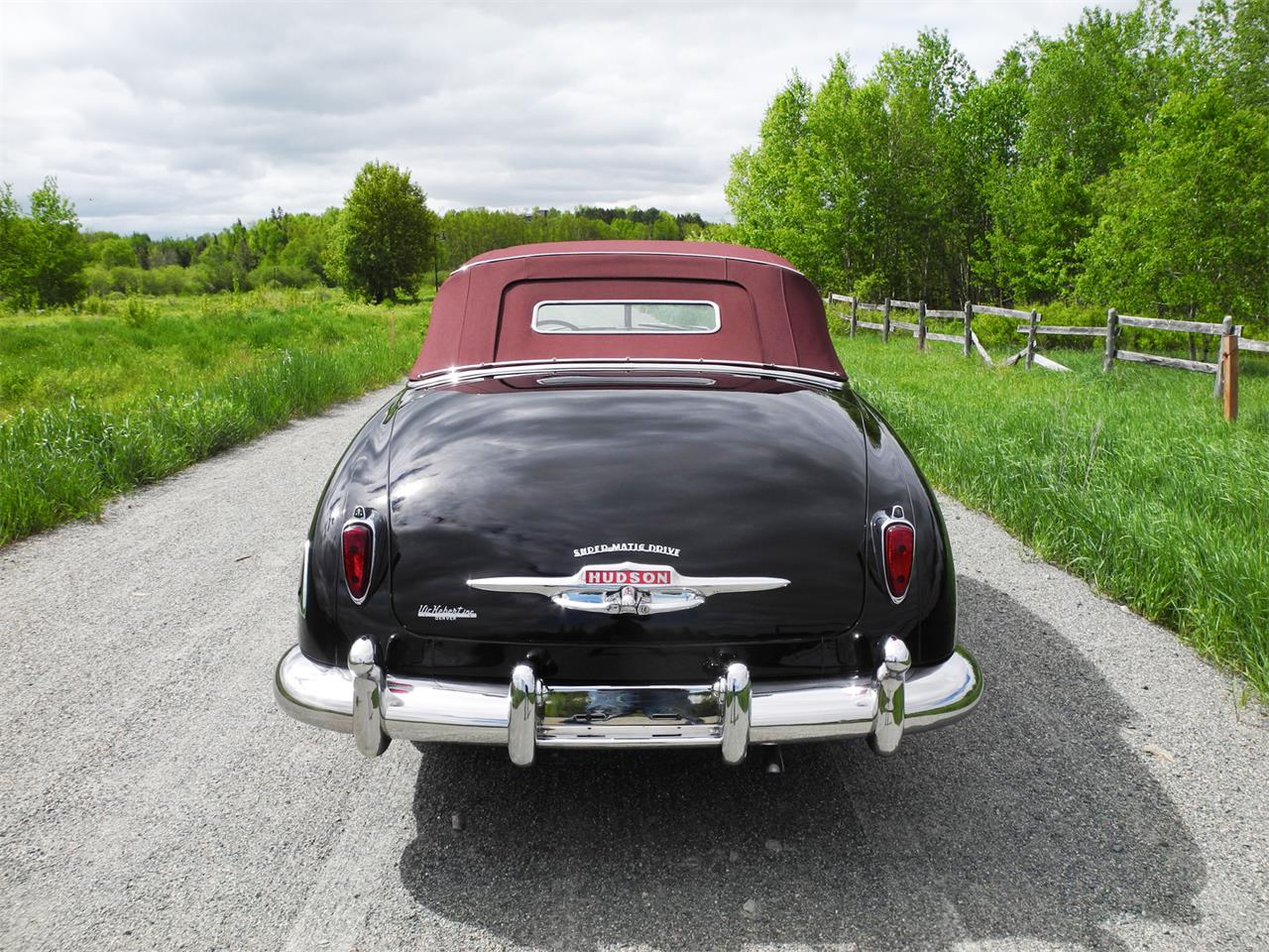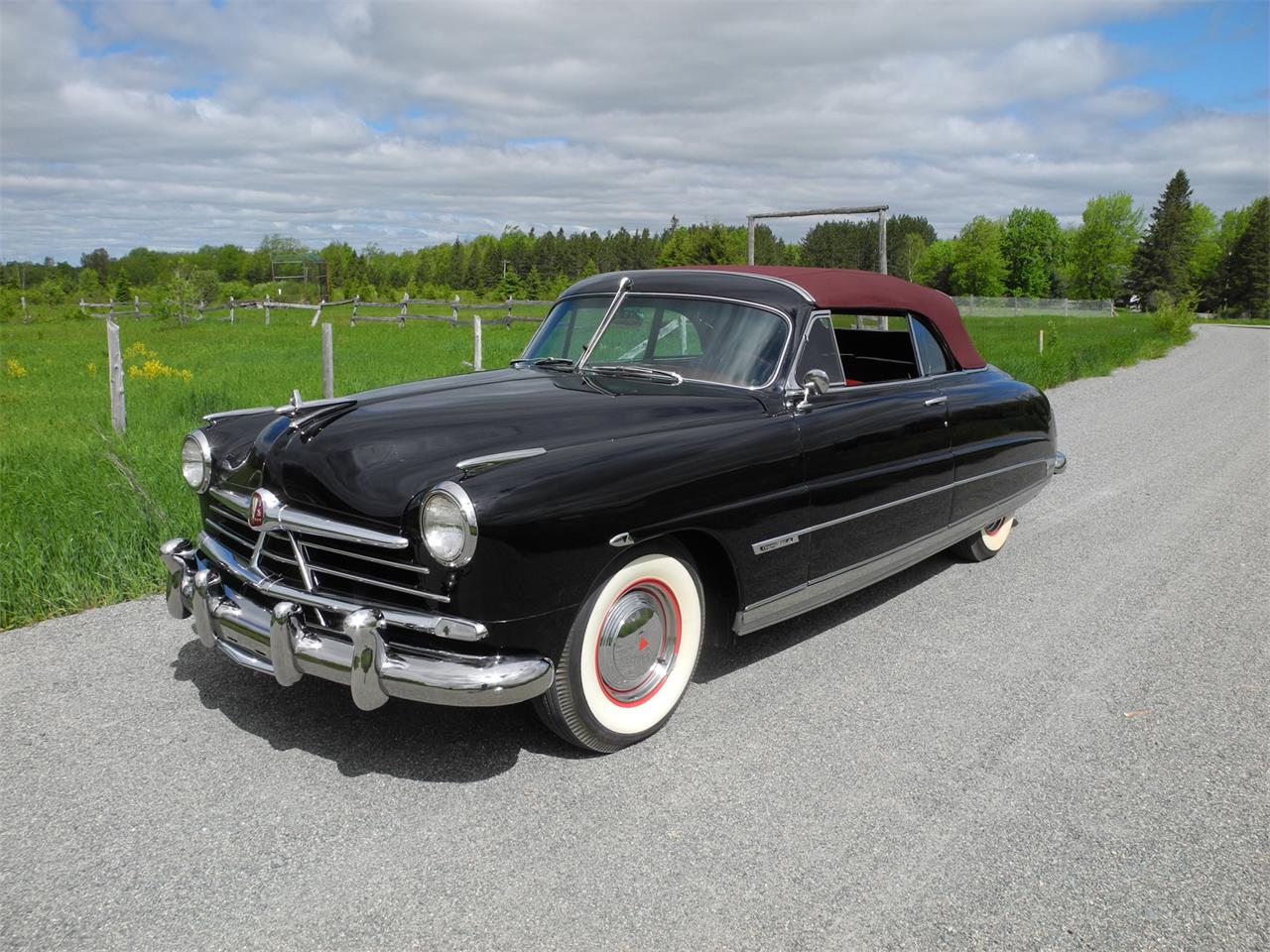 This stunning automobile, finished in show quality Ebony Black is drenched in flawless chrome & stainless trim, lavish maroon leather upholstery & complimented by a maroon stay-fast power convertible top. It’s equipped with the famous 254cid-128 horse-power straight eight engine & exclusive column shifted “super-matic drive” transmission. Several desirable options adorn this magnificent classic including radio & clock, power windows, weather control heater, front & rear bumper guards, fender skirts, full wheel covers with trim rings and BF Goodrich 760-15 Silvertown wide white wall tires.
